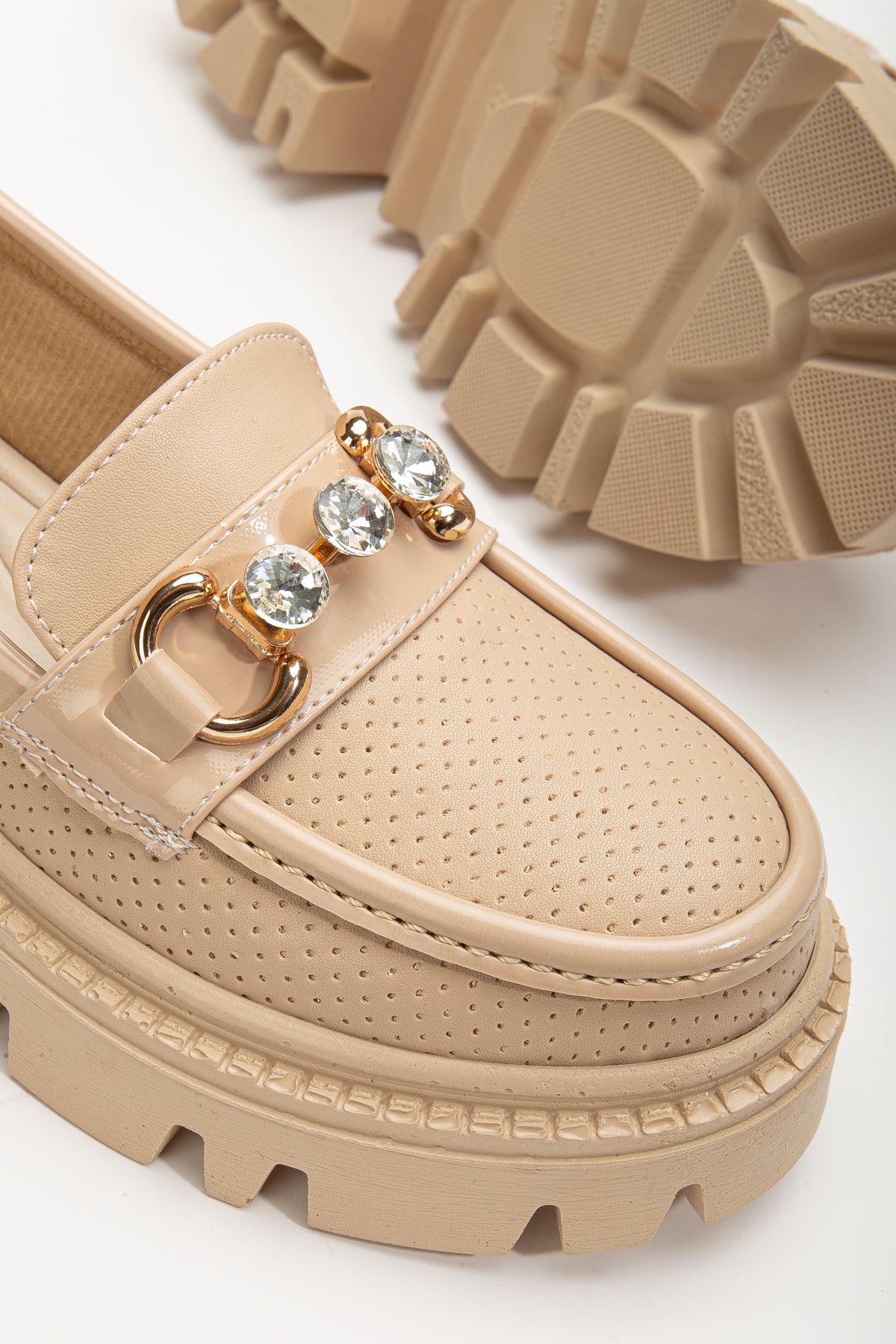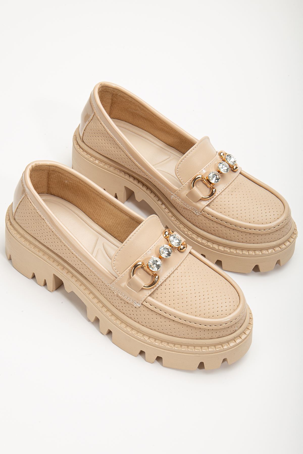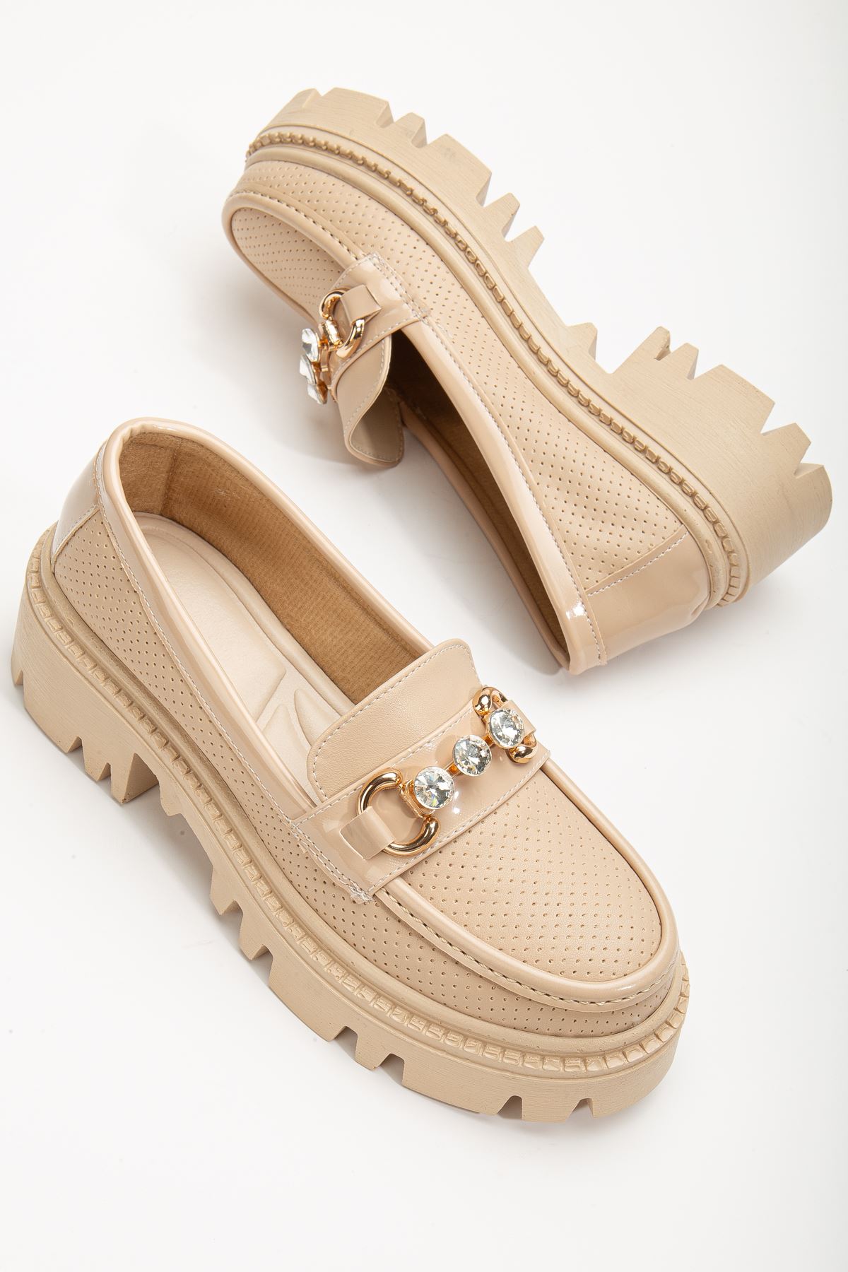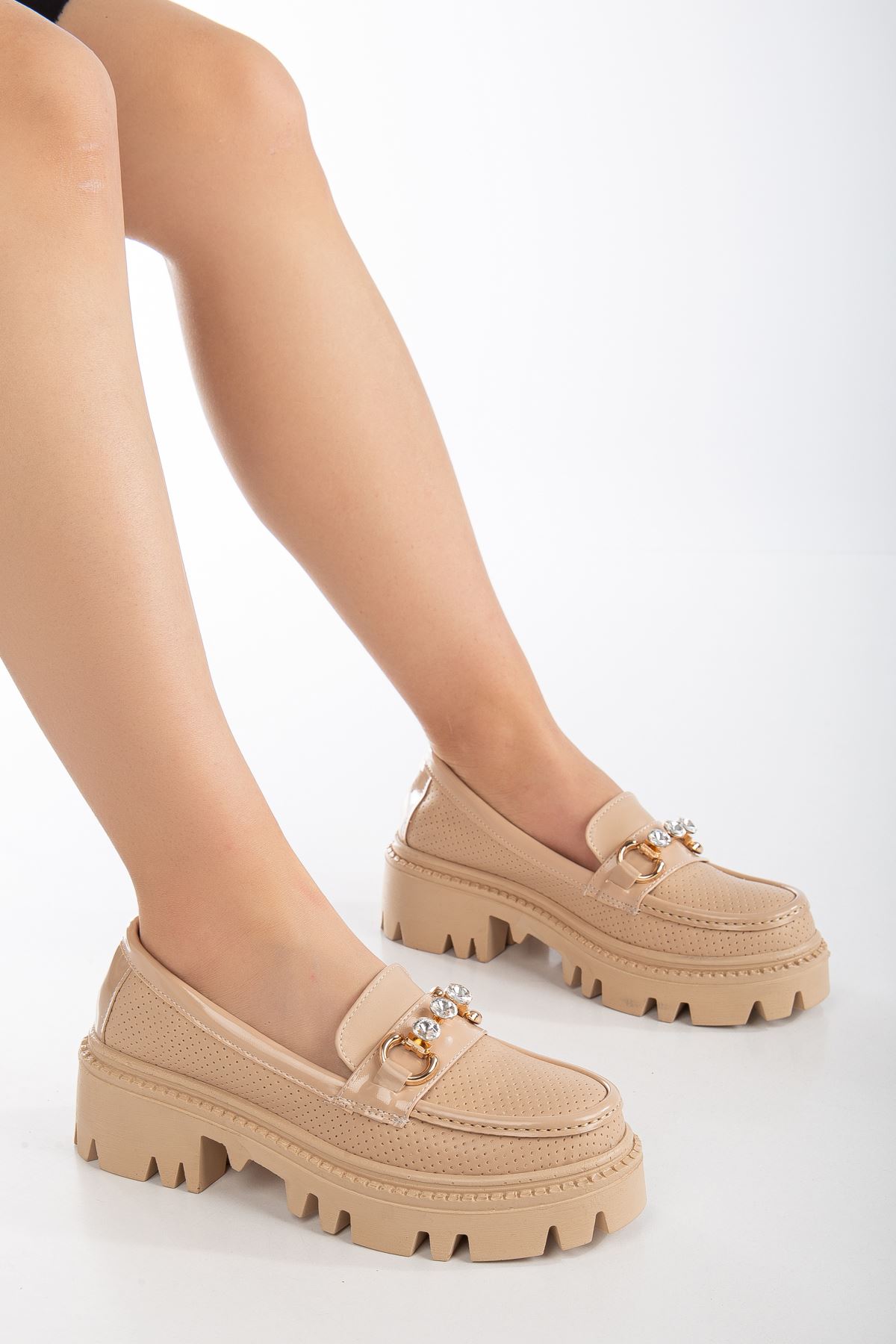 Renk: Nude Detay: BağcıklıMalzeme: Cilt Topuk Boyu: 5 cmPlatform: 2,5 cmTaban Materyali: Poli Tabanİç Taban: Pad'li İç Taban.Kalıp: Standart Ayak Ölçülerine Göre Tam Kalıp