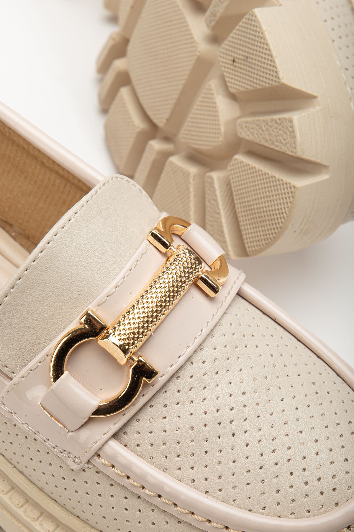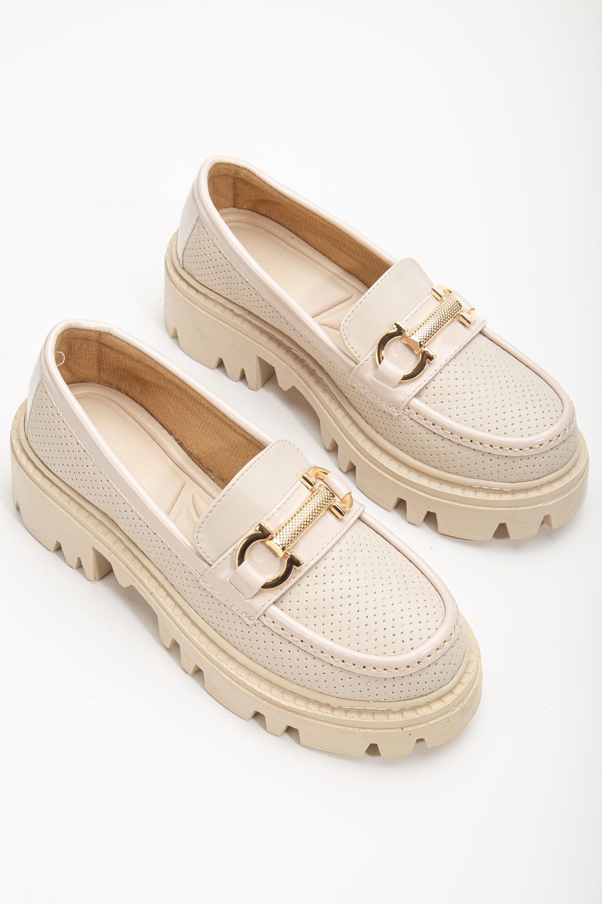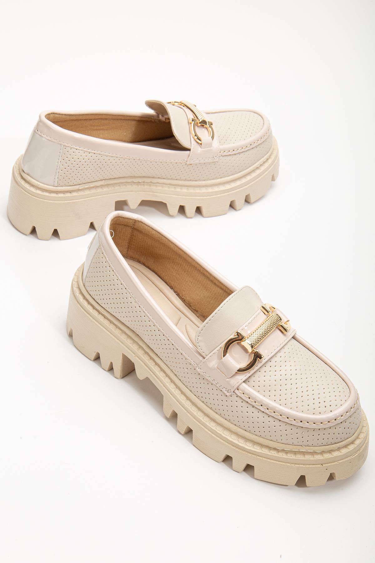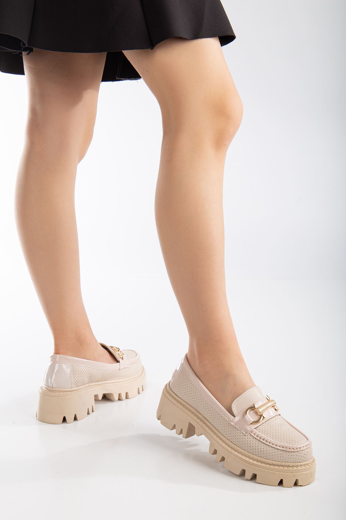 Renk: Krem Detay: BağcıklıMalzeme: Cilt Topuk Boyu: 5 cmPlatform: 2,5 cmTaban Materyali: Poli Tabanİç Taban: Pad'li İç Taban.Kalıp: Standart Ayak Ölçülerine Göre Tam Kalıp