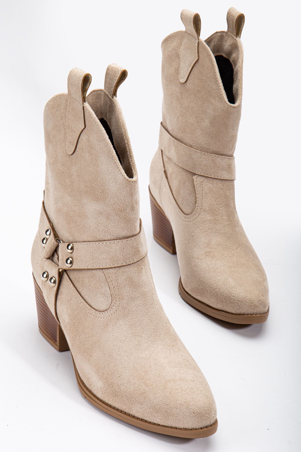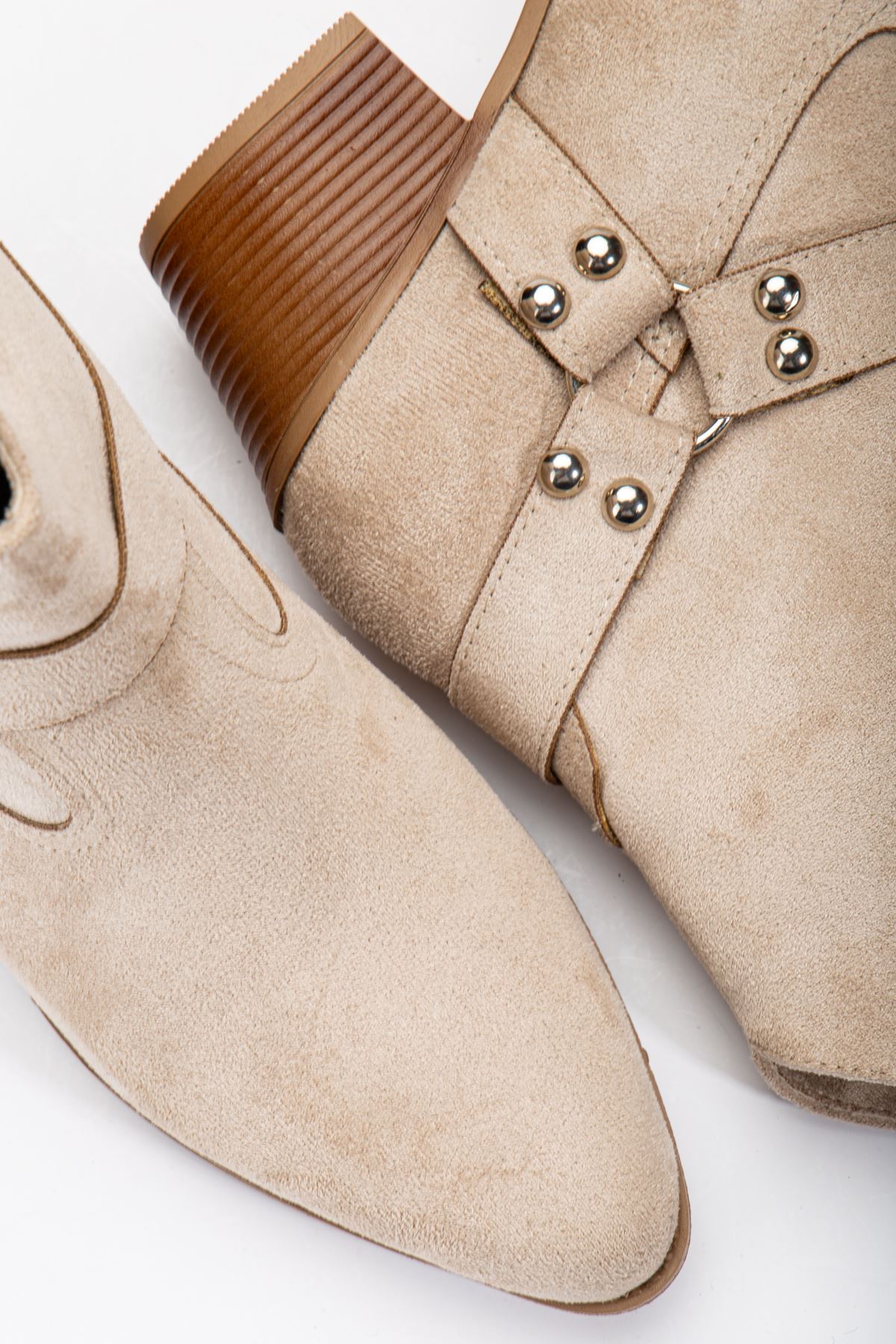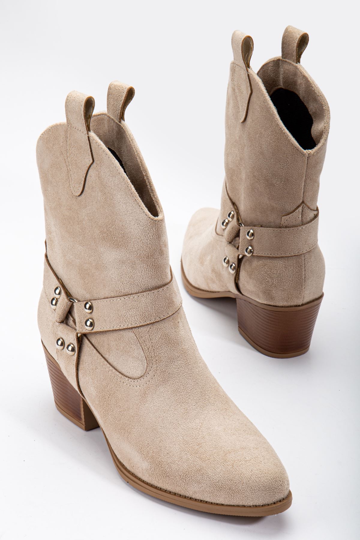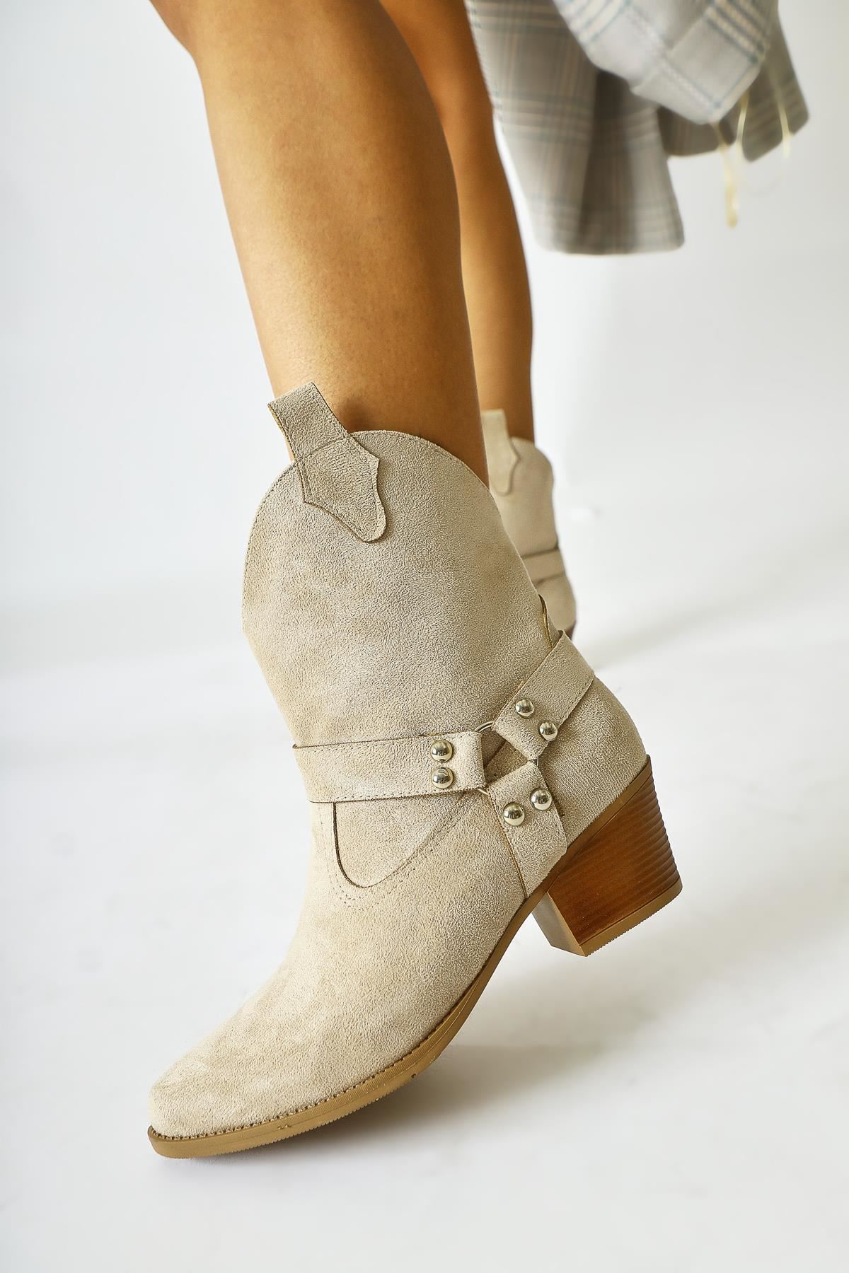 Fate Kadın Bej Süet Termo Taban Sivri Burunlu Western Kovboy Bot