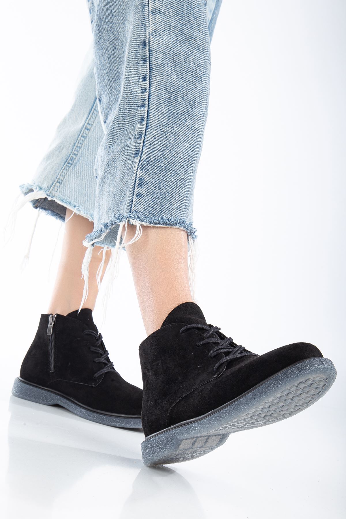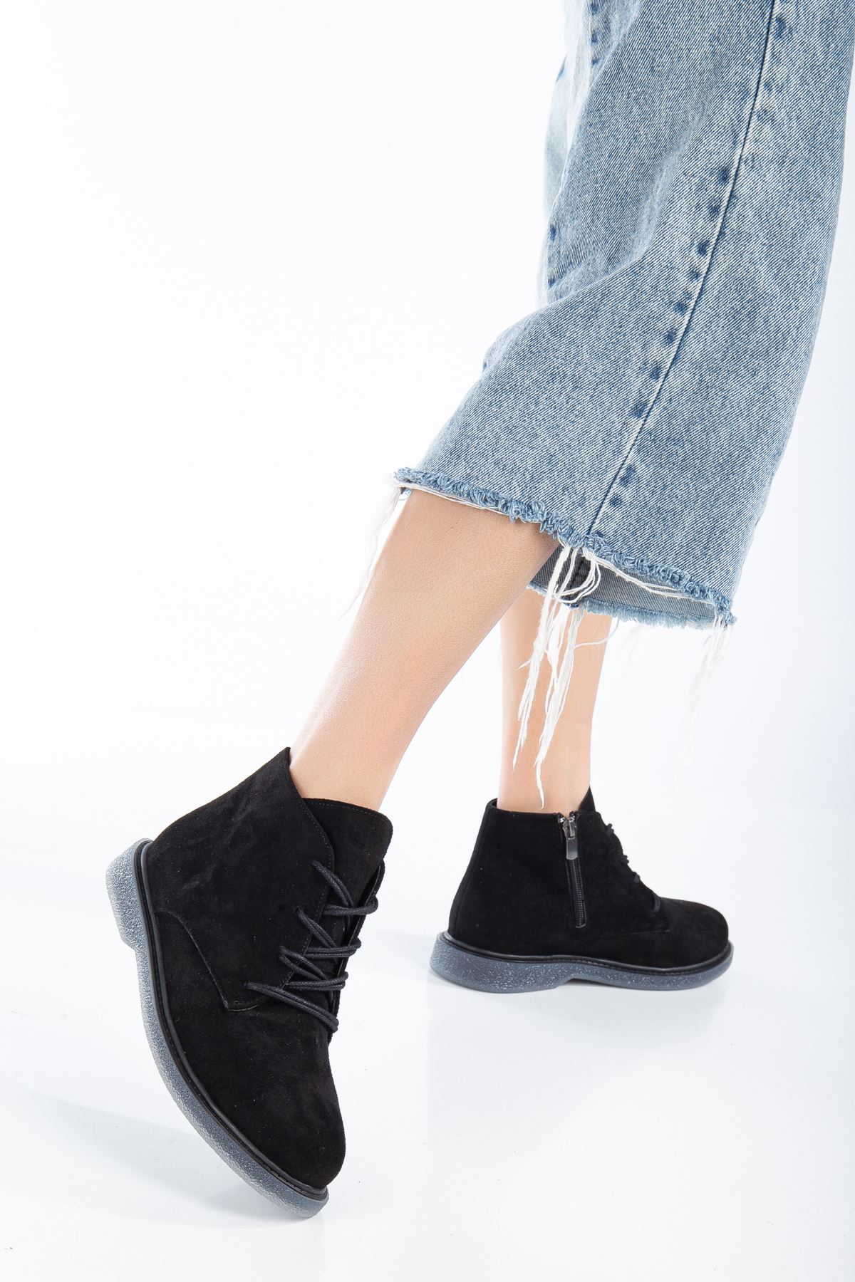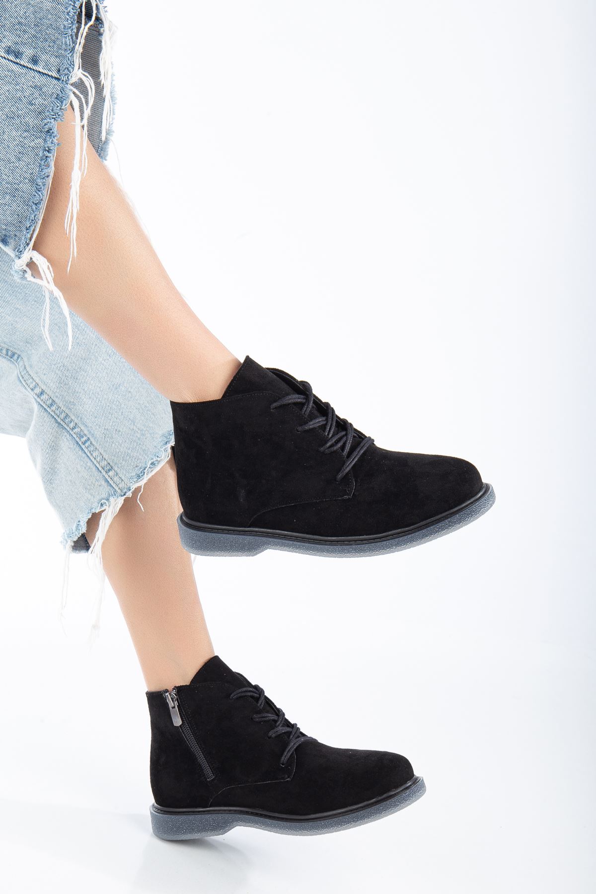Renk:SiyahDetay: SüetMalzeme: Suni Deri Topuk Boyu: 2 cmTaban Materyali: Termo Tabanİç Taban: Pad'li İç Taban. Kalıp: Standart Ayak Ölçülerine Göre Tam Kalıp.