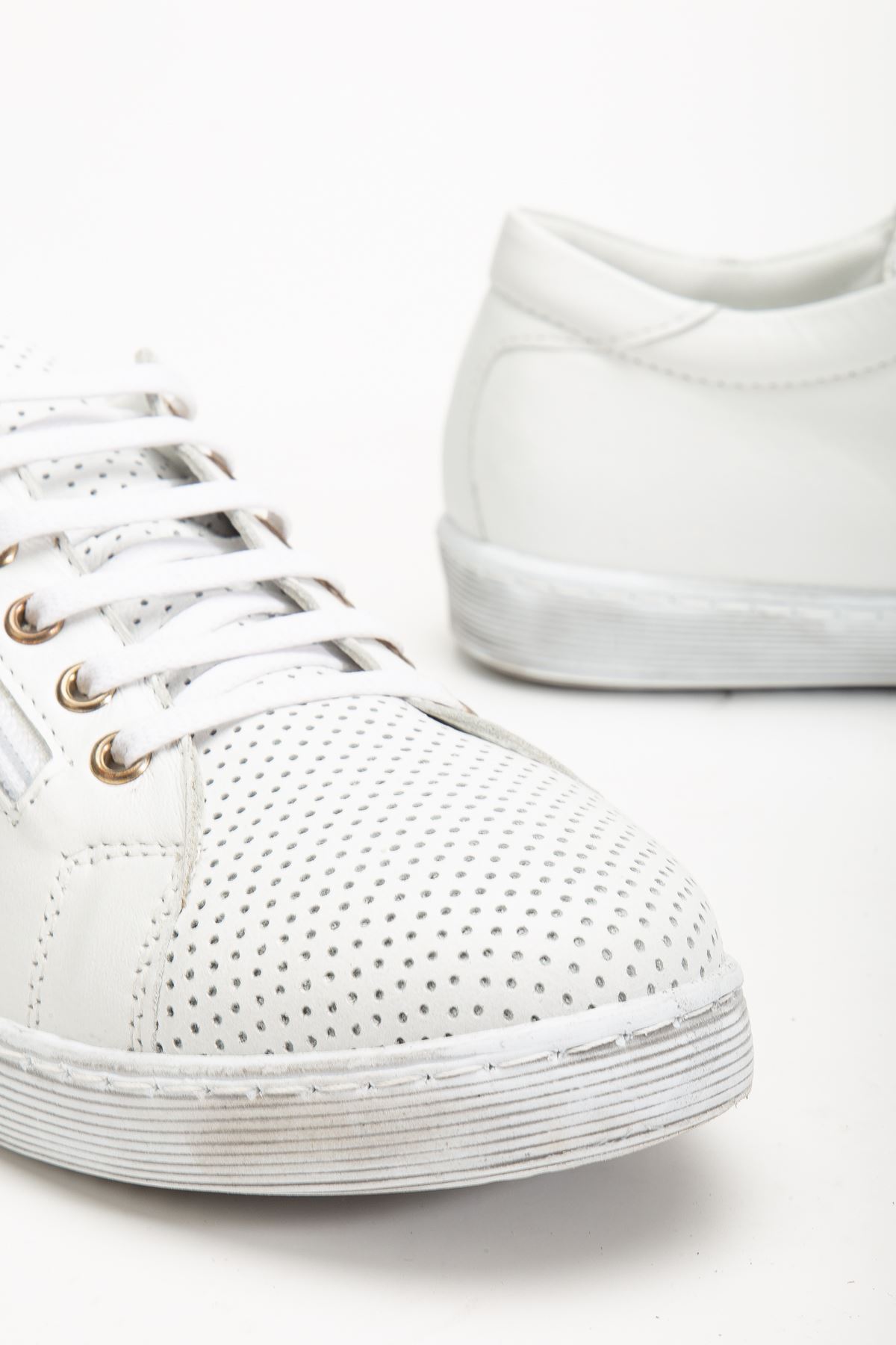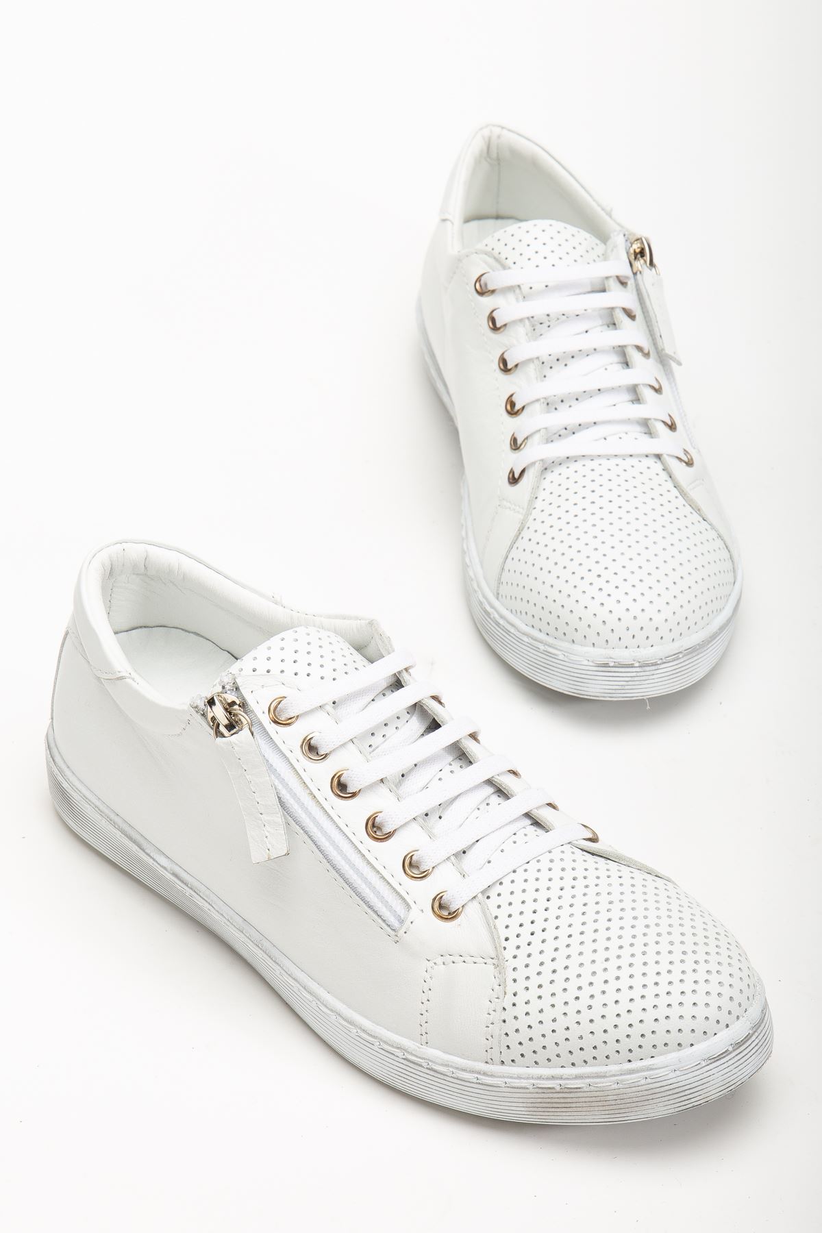 Kadın Beyaz Hakiki Deri Delikli Spor Ayakkabı