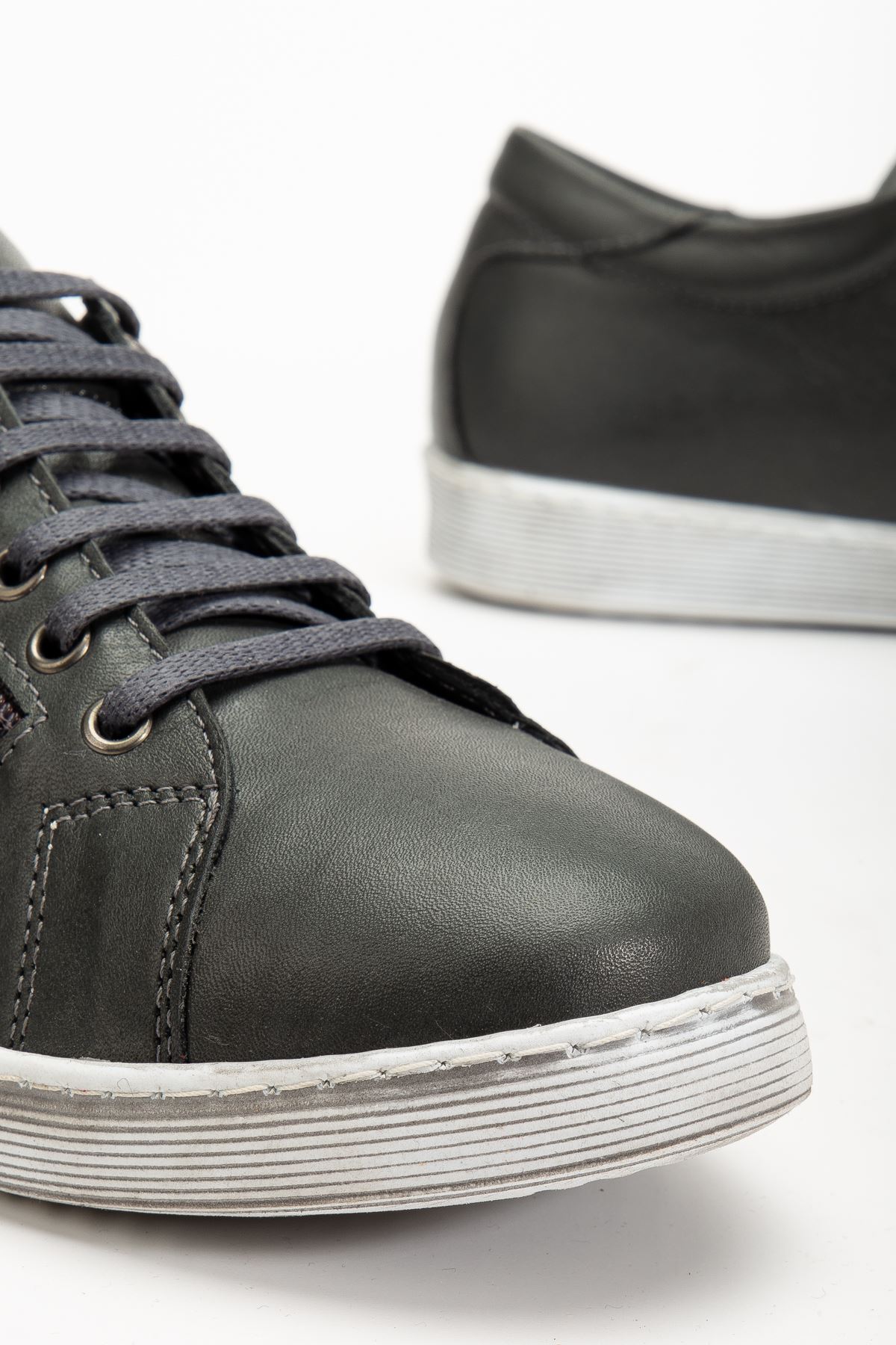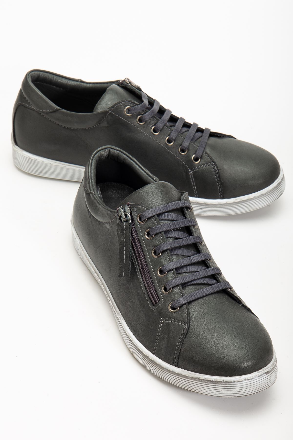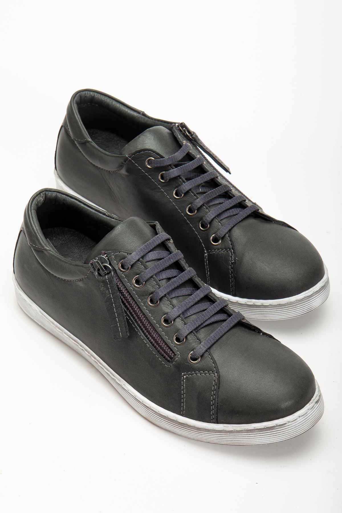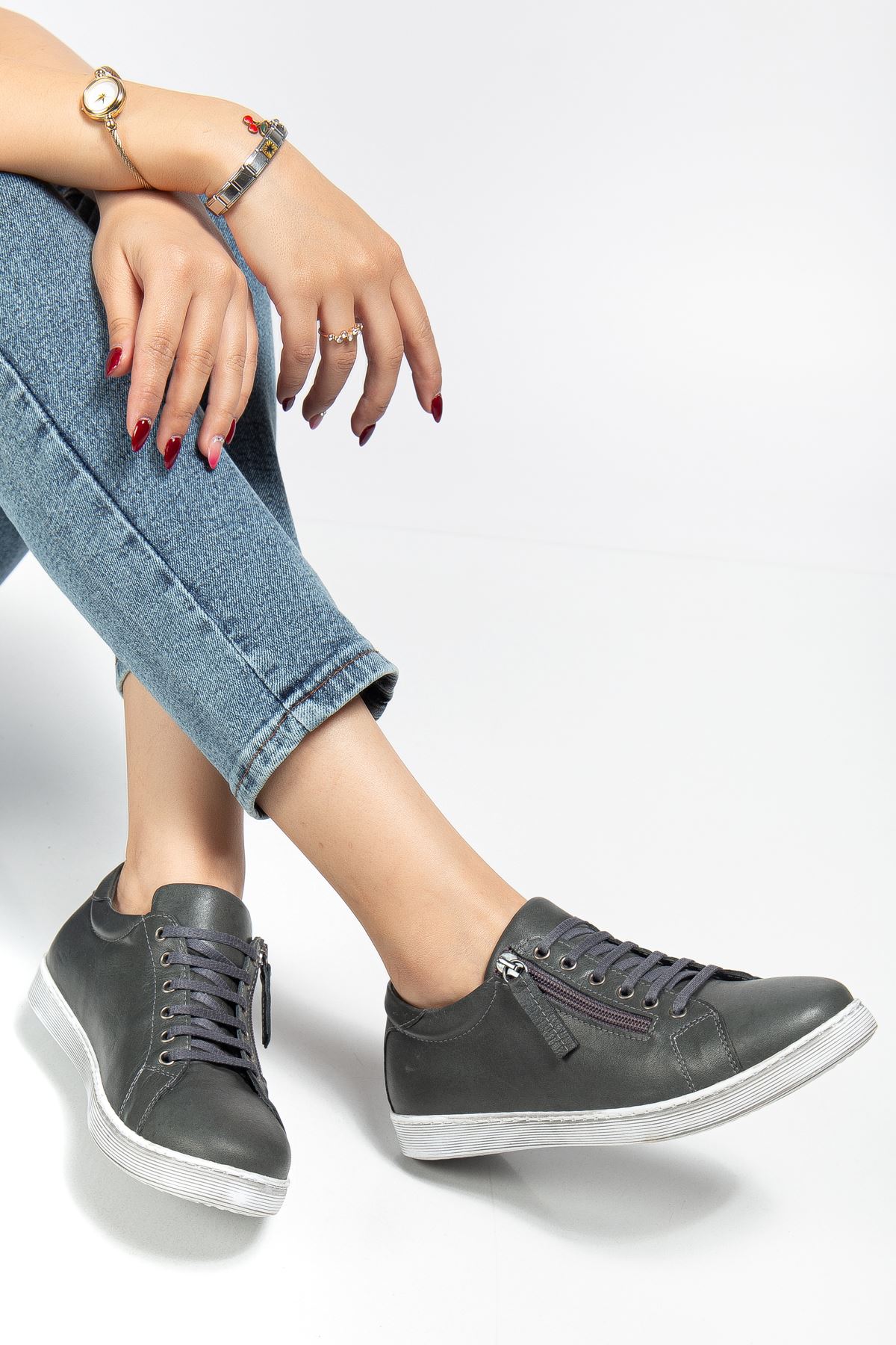 Kadın Füme Hakiki Deri Yandan Fermuarlı Bağcıklı Spor Ayakkabı