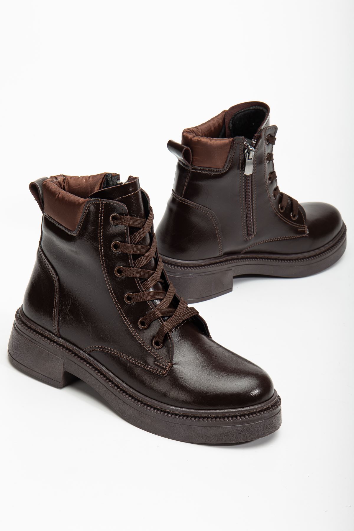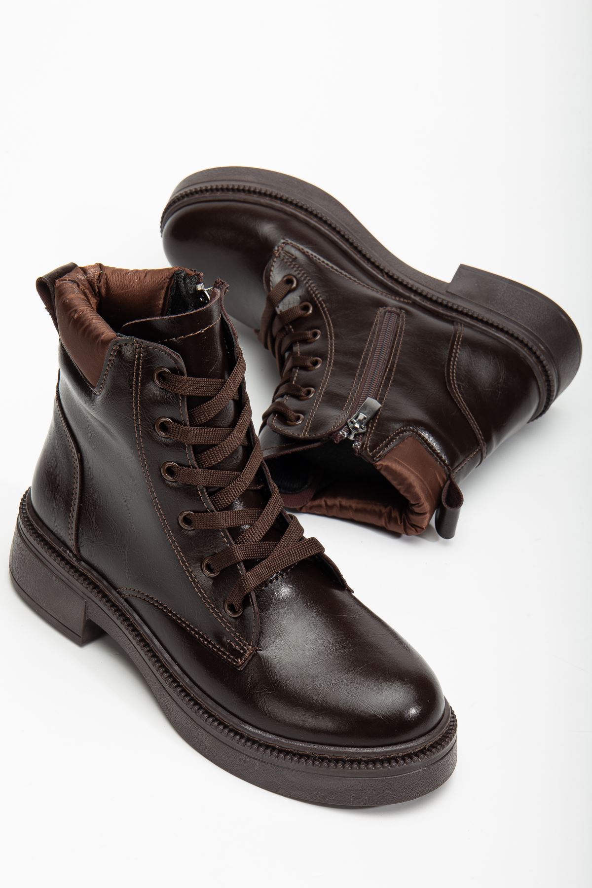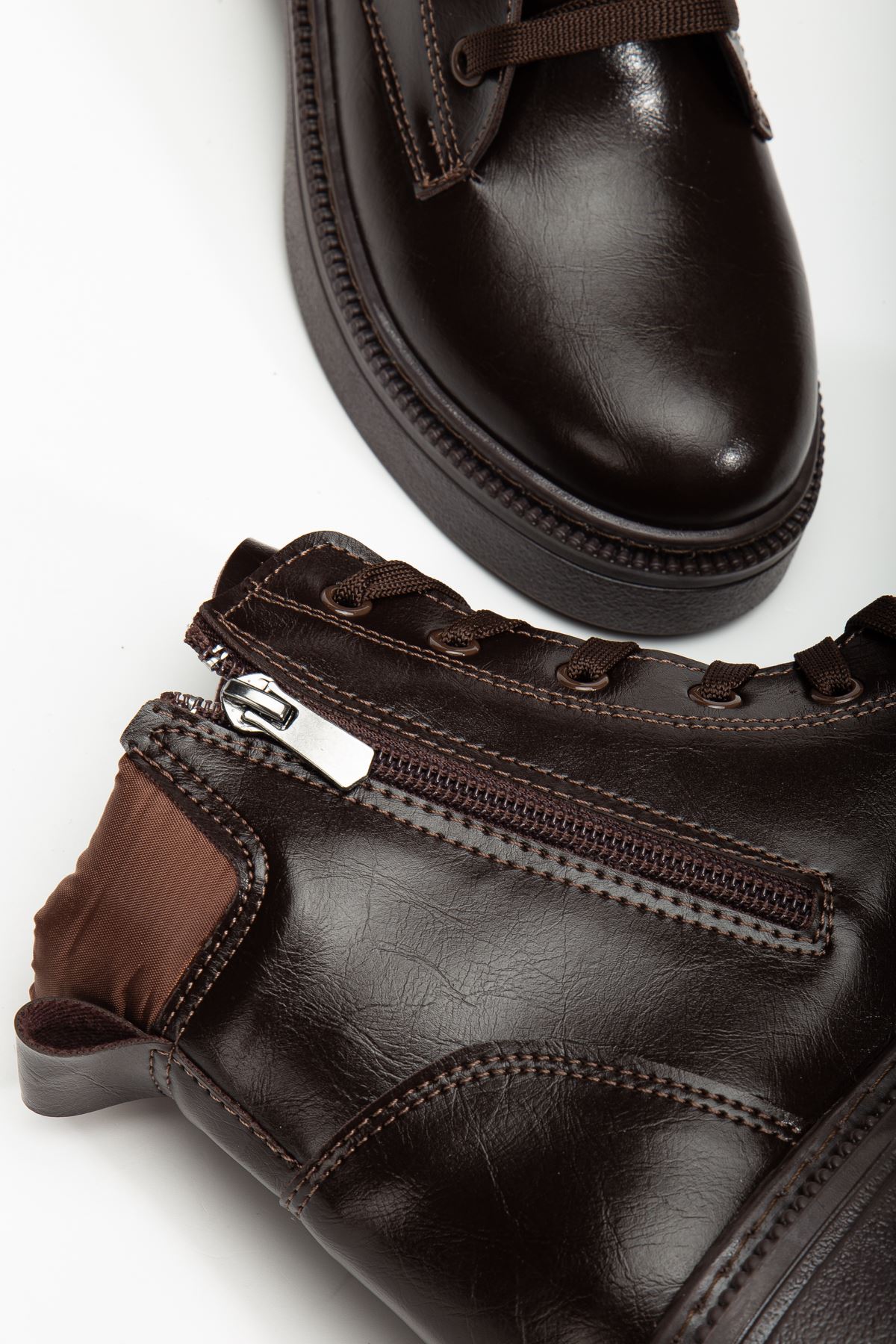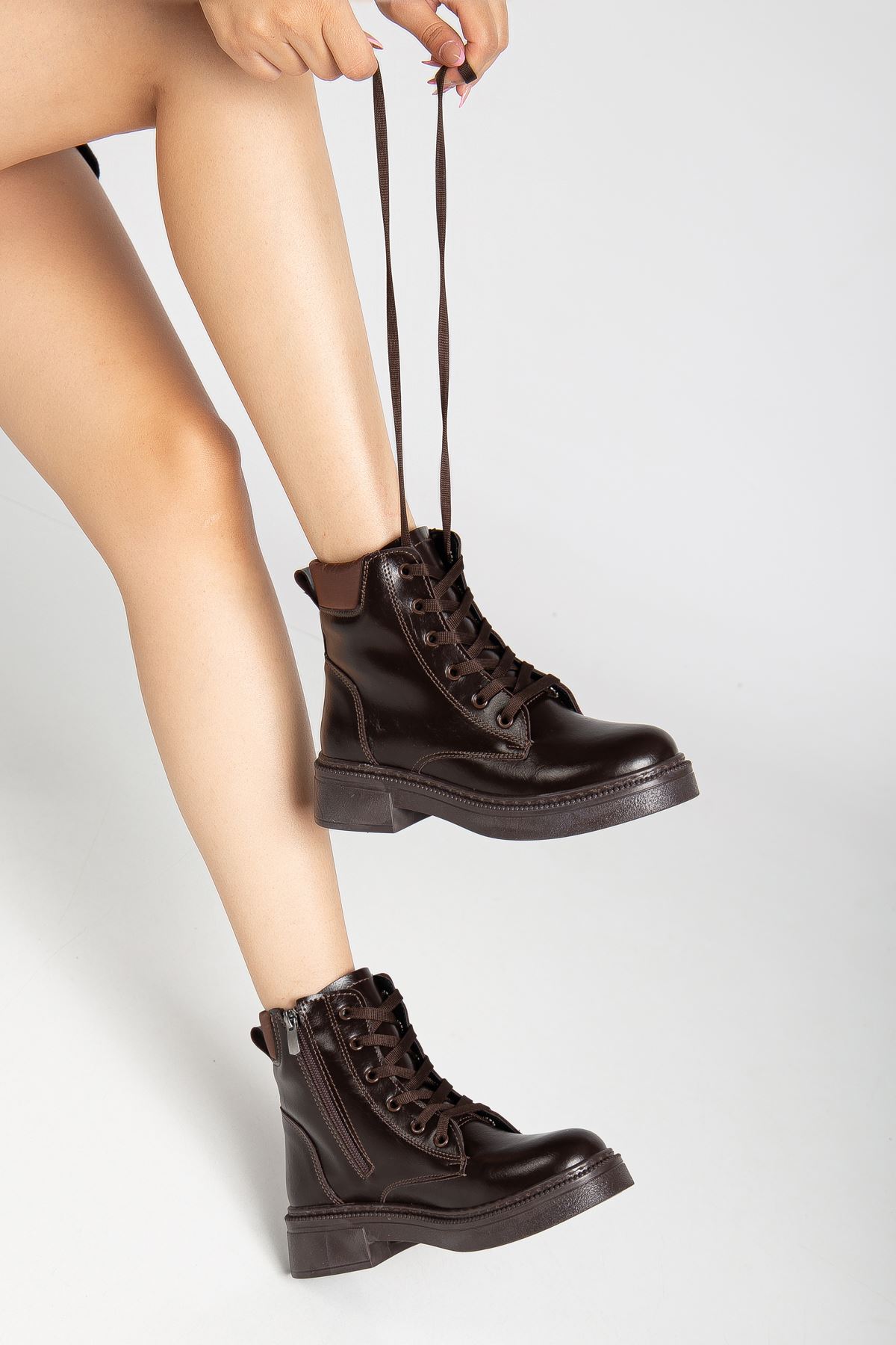 Renk: Kahverengi Detay: Bağcıklı Malzeme: Cilt Topuk Boyu: 4,5 Cm Taban Materyali: Termo Taban İç Taban: Pad'li İç Taban. Kalıp: Standart Ayak Ölçülerine Göre Tam Kalıp.