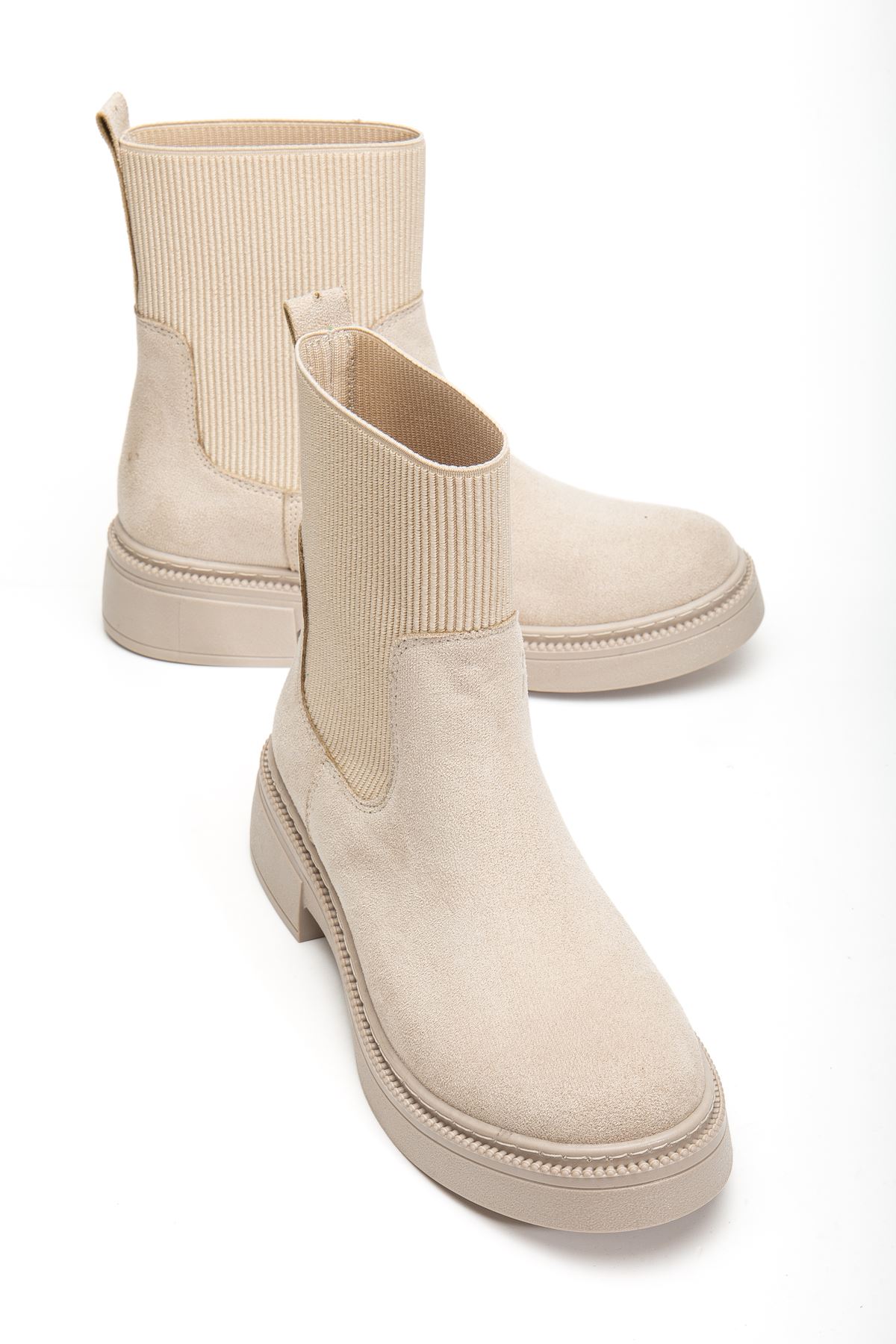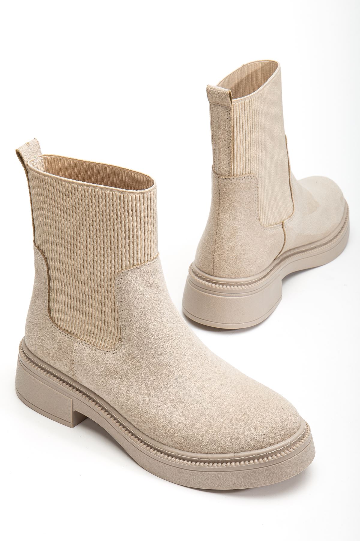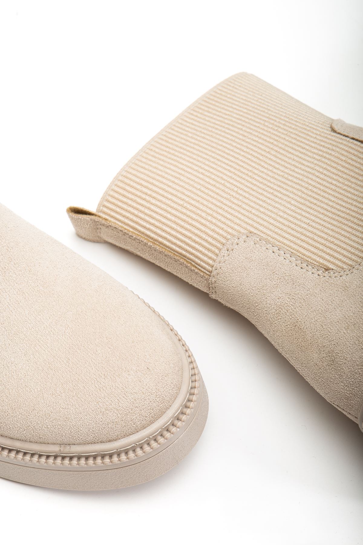 Renk: Bej Detay: Lastikli Malzeme: Süet Topuk Boyu: 4,5 Cm Taban Materyali: Termo Taban İç Taban: Pad'li İç Taban. Kalıp: Standart Ayak Ölçülerine Göre Tam Kalıp.