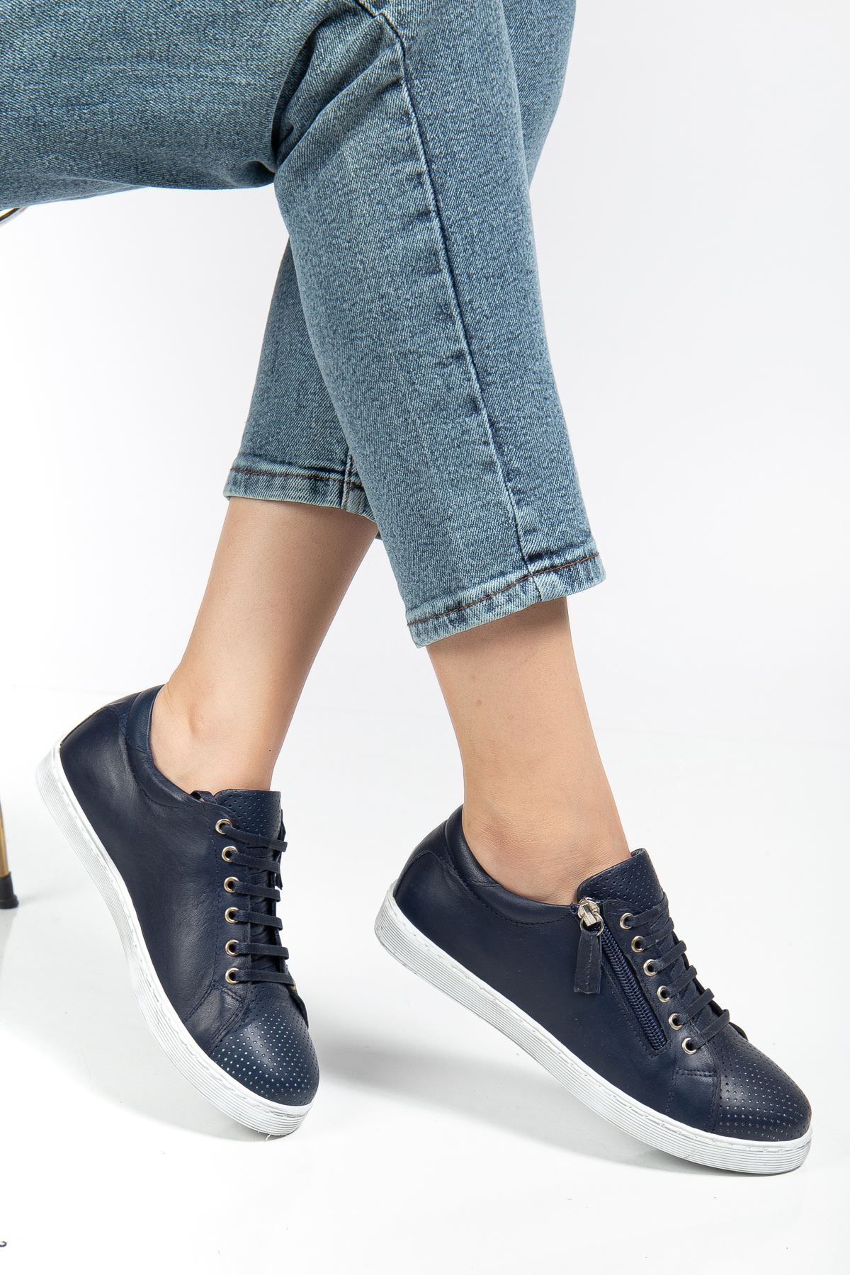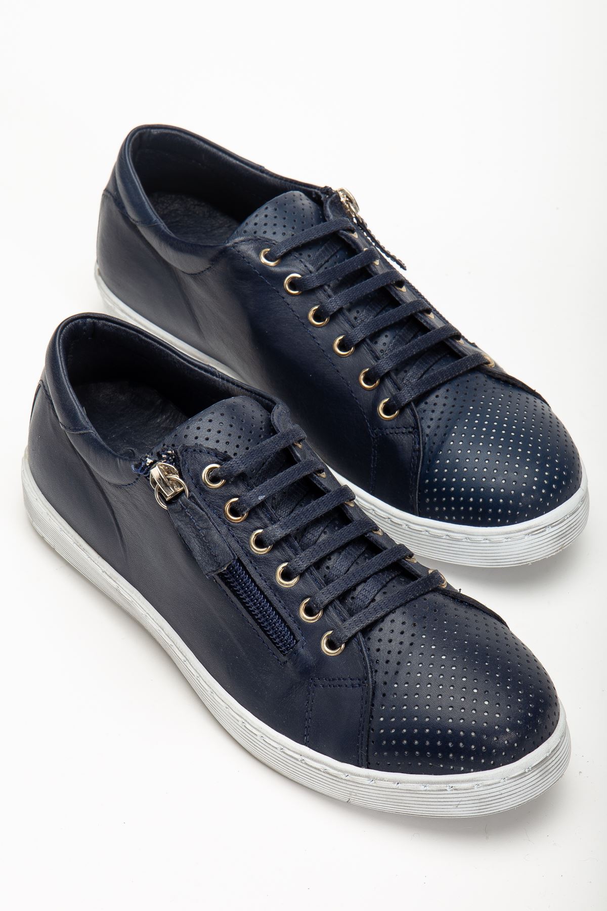 Kadın Lacivert Hakiki Deri Delikli Spor Ayakkabı