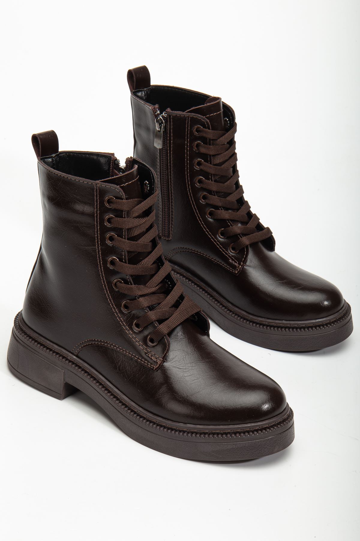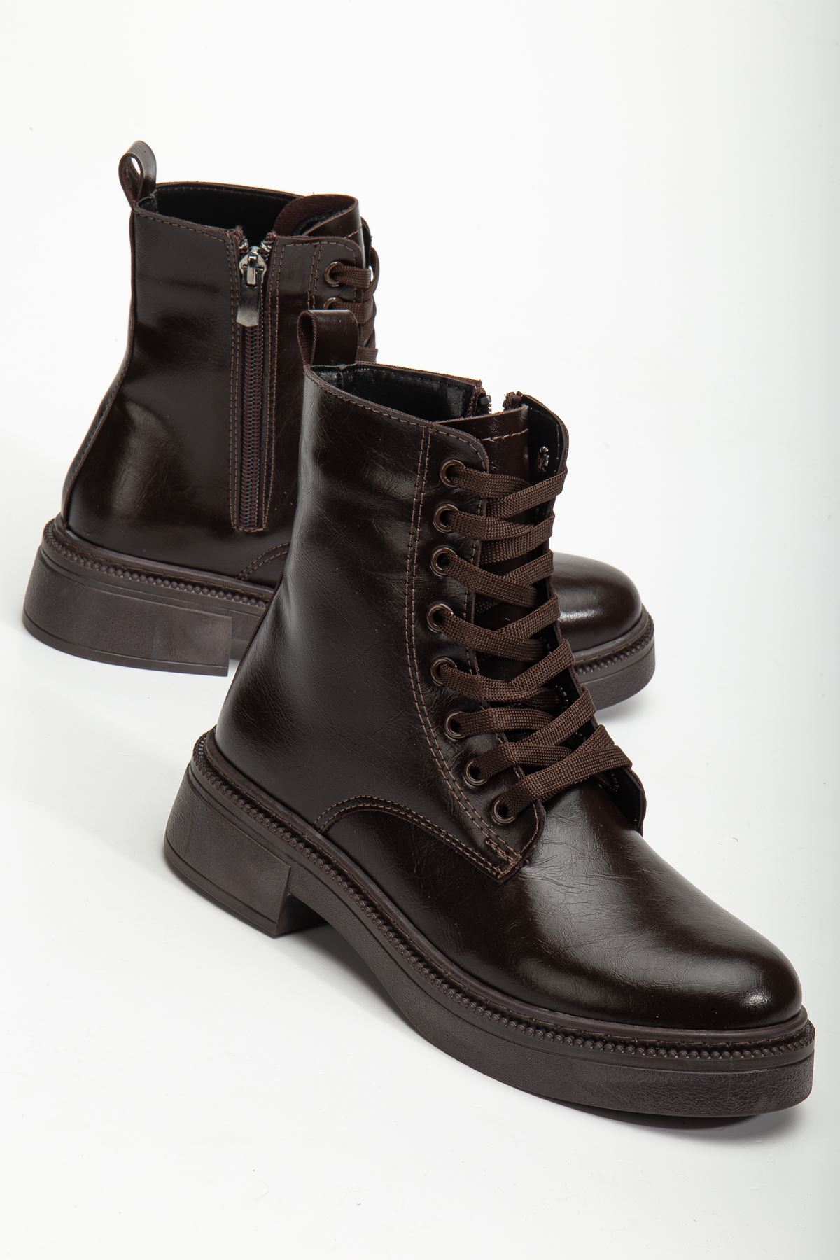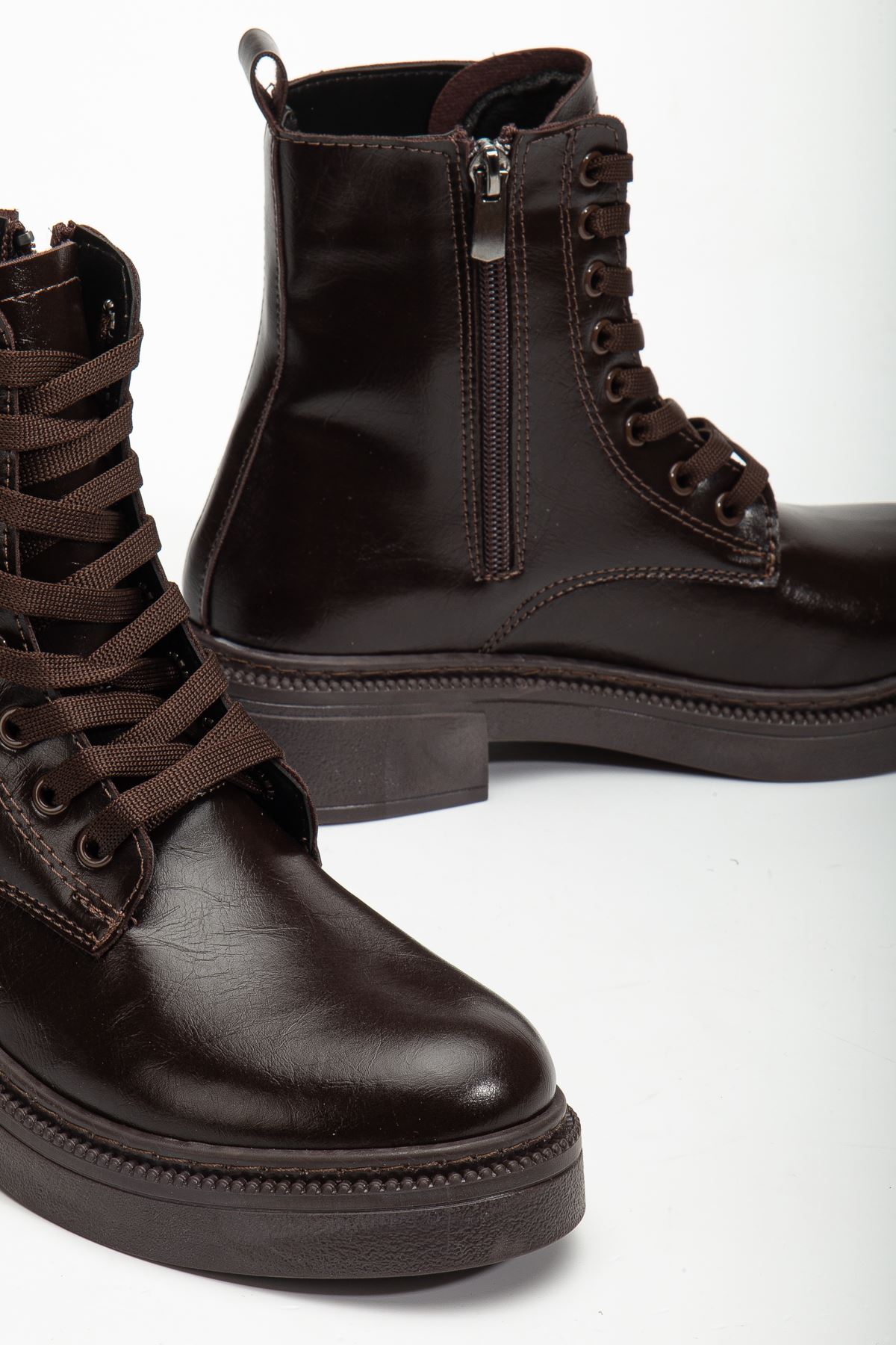Renk: Kahverengi Detay: Bağcıklı Malzeme: Cilt Topuk Boyu: 4,5 Cm Taban Materyali: Termo Taban İç Taban: Pad'li İç Taban. Kalıp: Standart Ayak Ölçülerine Göre Tam Kalıp.