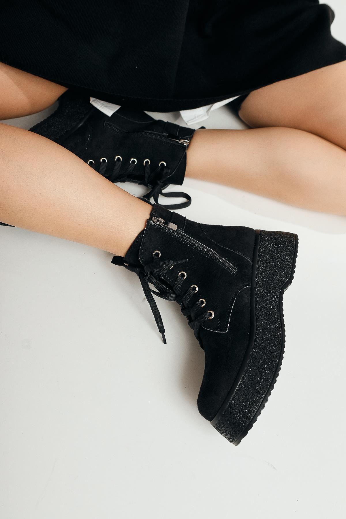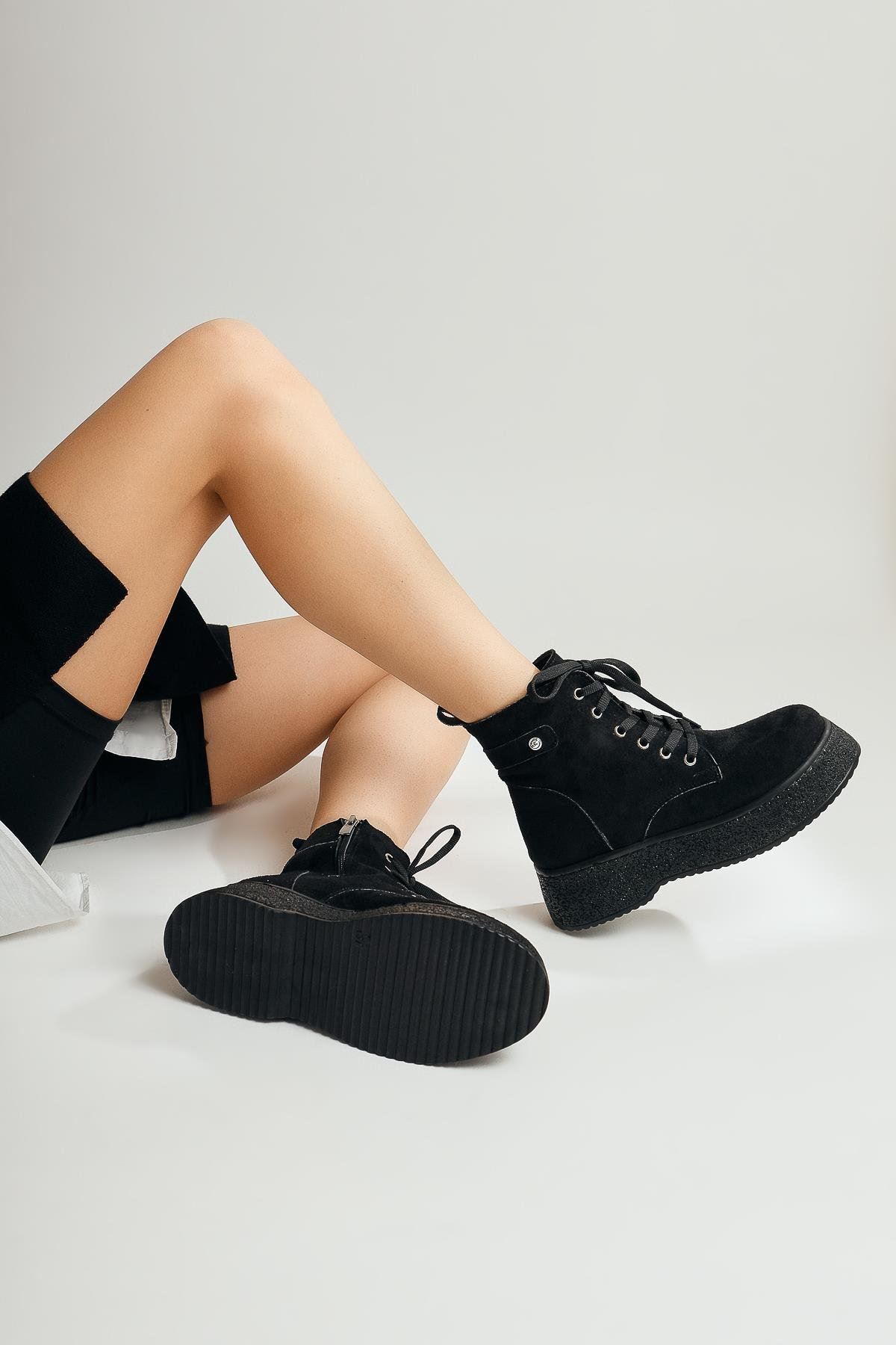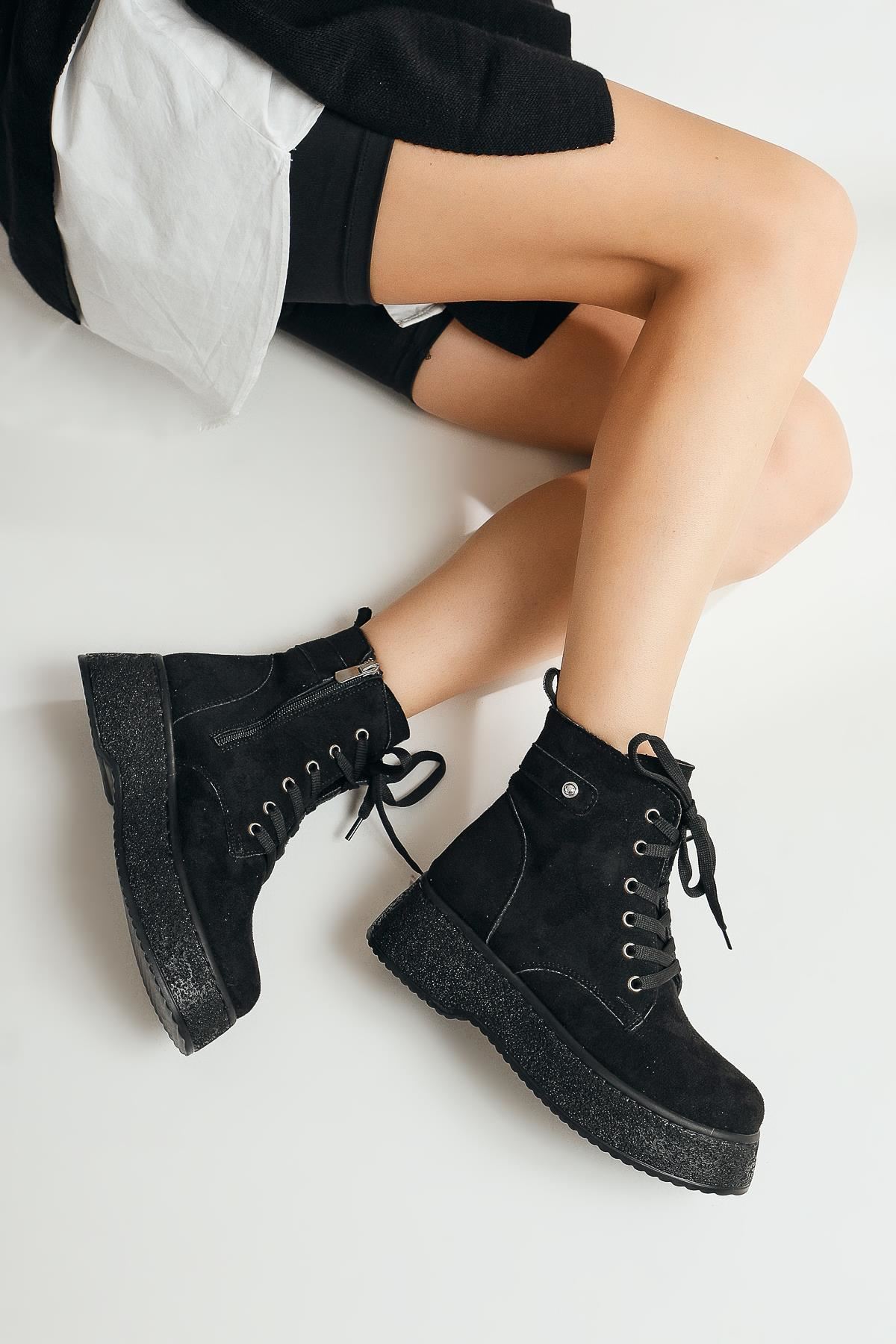 Renk: Siyah Detay: Bağcıklı Yandan Fermuarlı Malzeme: Süet Topuk Boyu: 3,5 cm. Taban Materyali: Termo Taban İç Taban: Pad'li İç Taban. Kalıp: Standart Ayak Ölçülerine Göre Dar Kalıp.