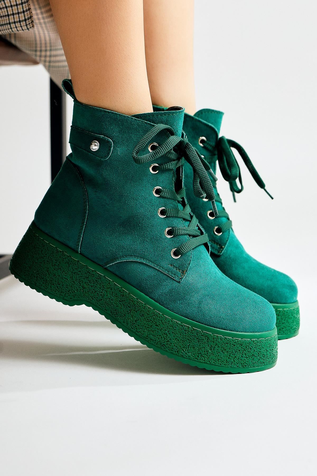 Renk: Yeşil Detay: Bağcıklı Yandan Fermuarlı Malzeme: Süet Topuk Boyu: 3,5 cm. Taban Materyali: Termo Taban İç Taban: Pad'li İç Taban. Kalıp: Standart Ayak Ölçülerine Göre Dar Kalıp.