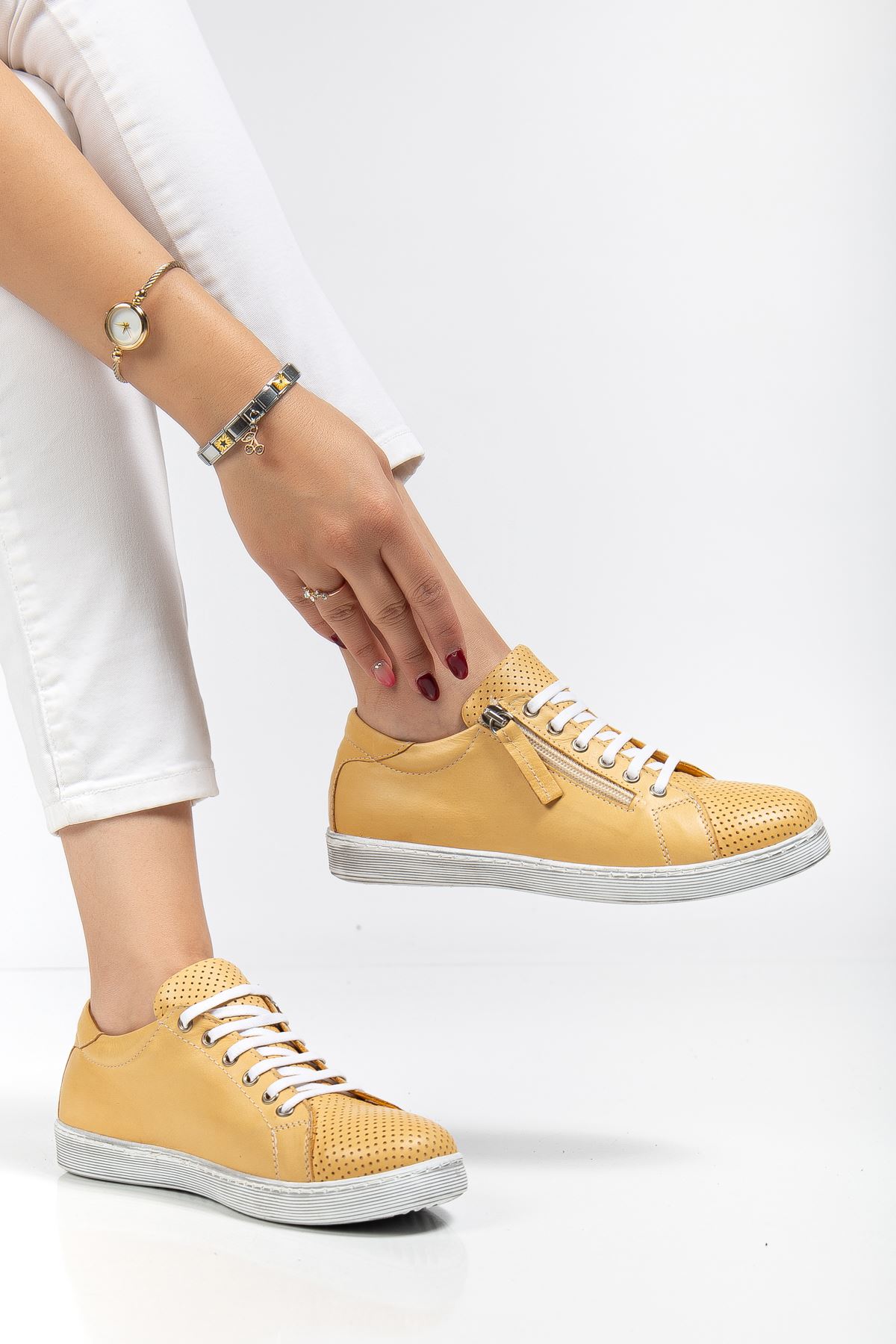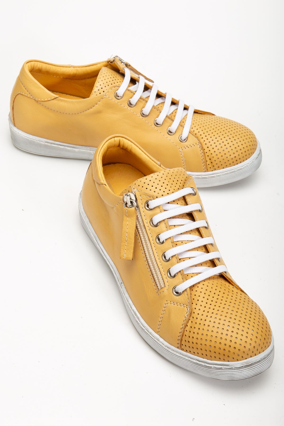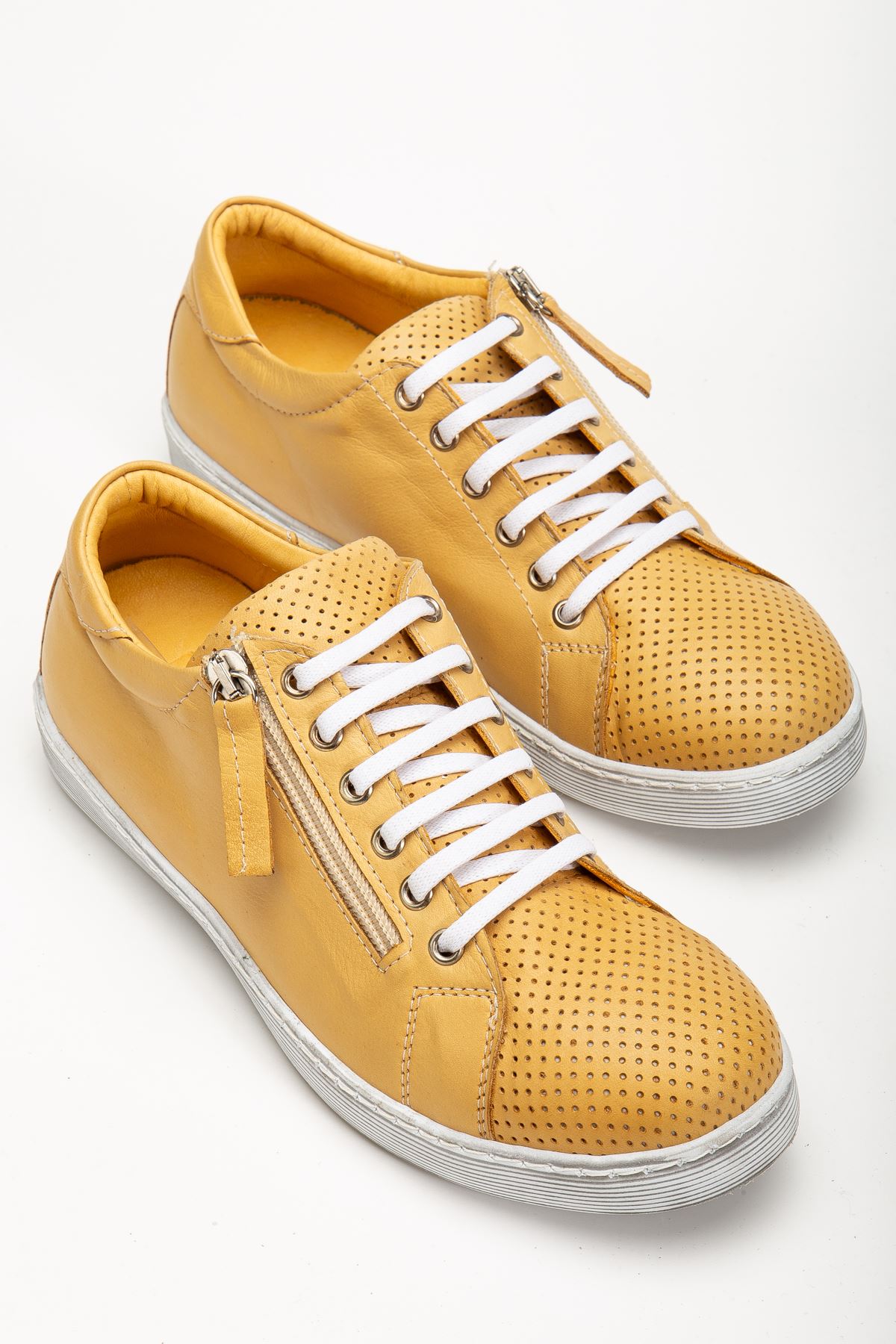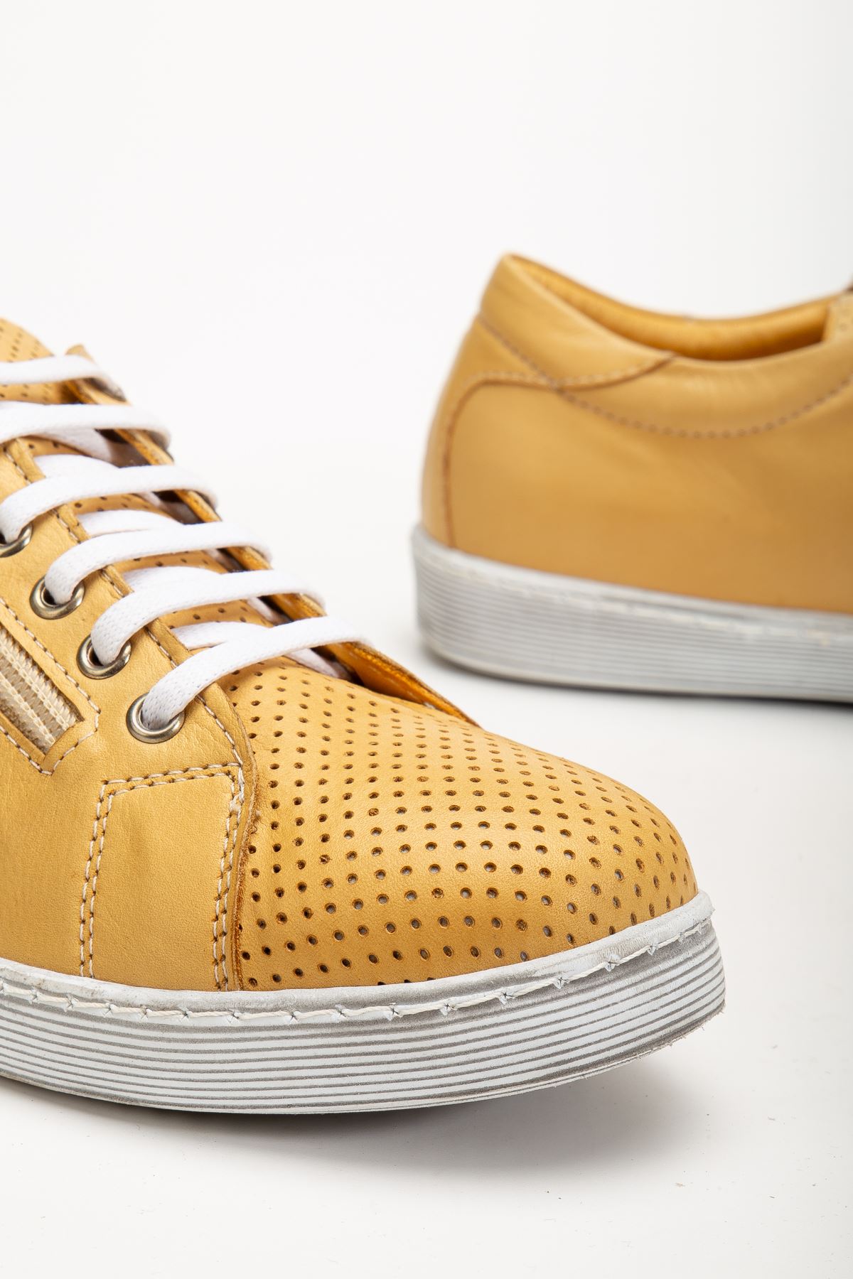 Kadın Sarı Hakiki Deri Delikli Spor Ayakkabı