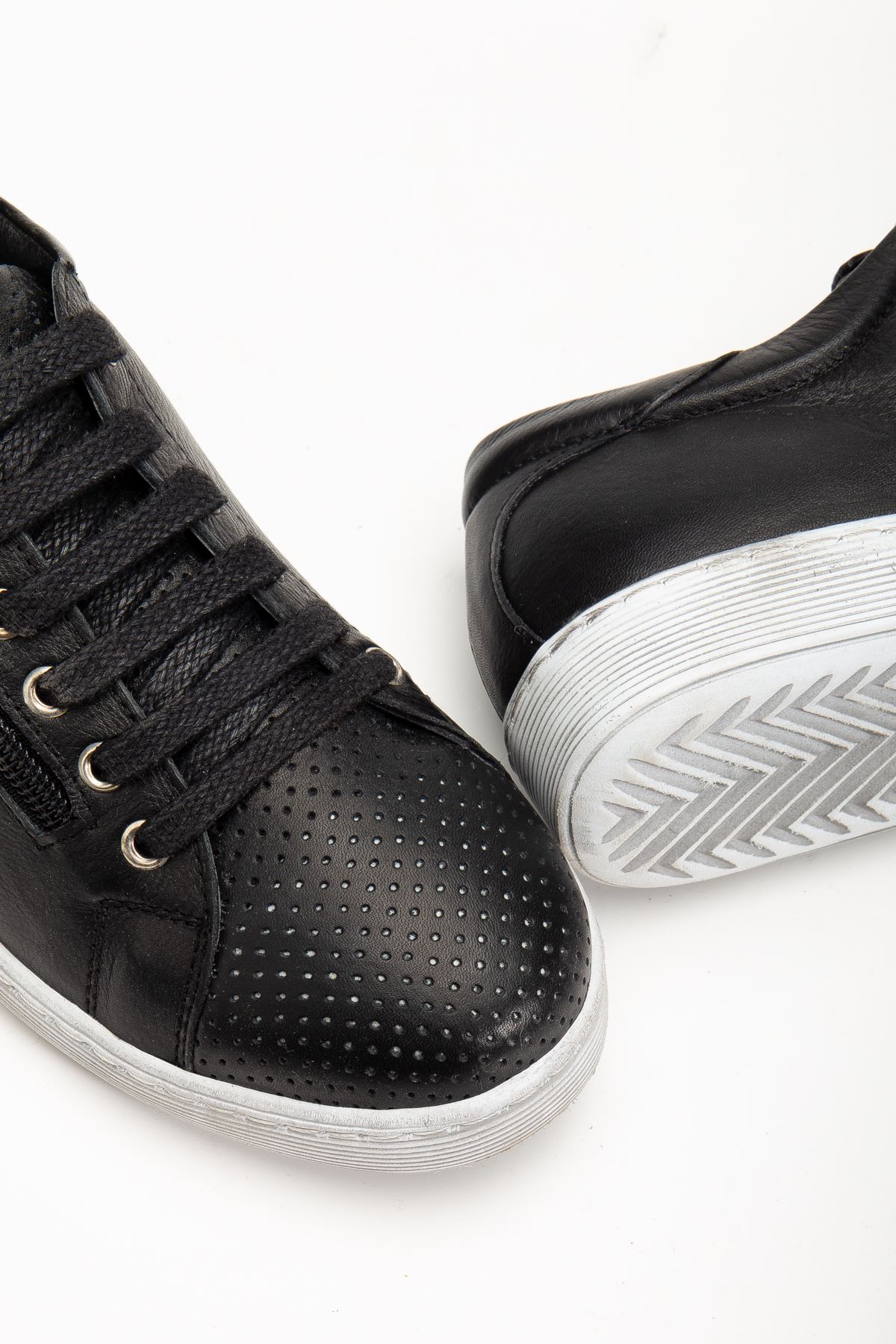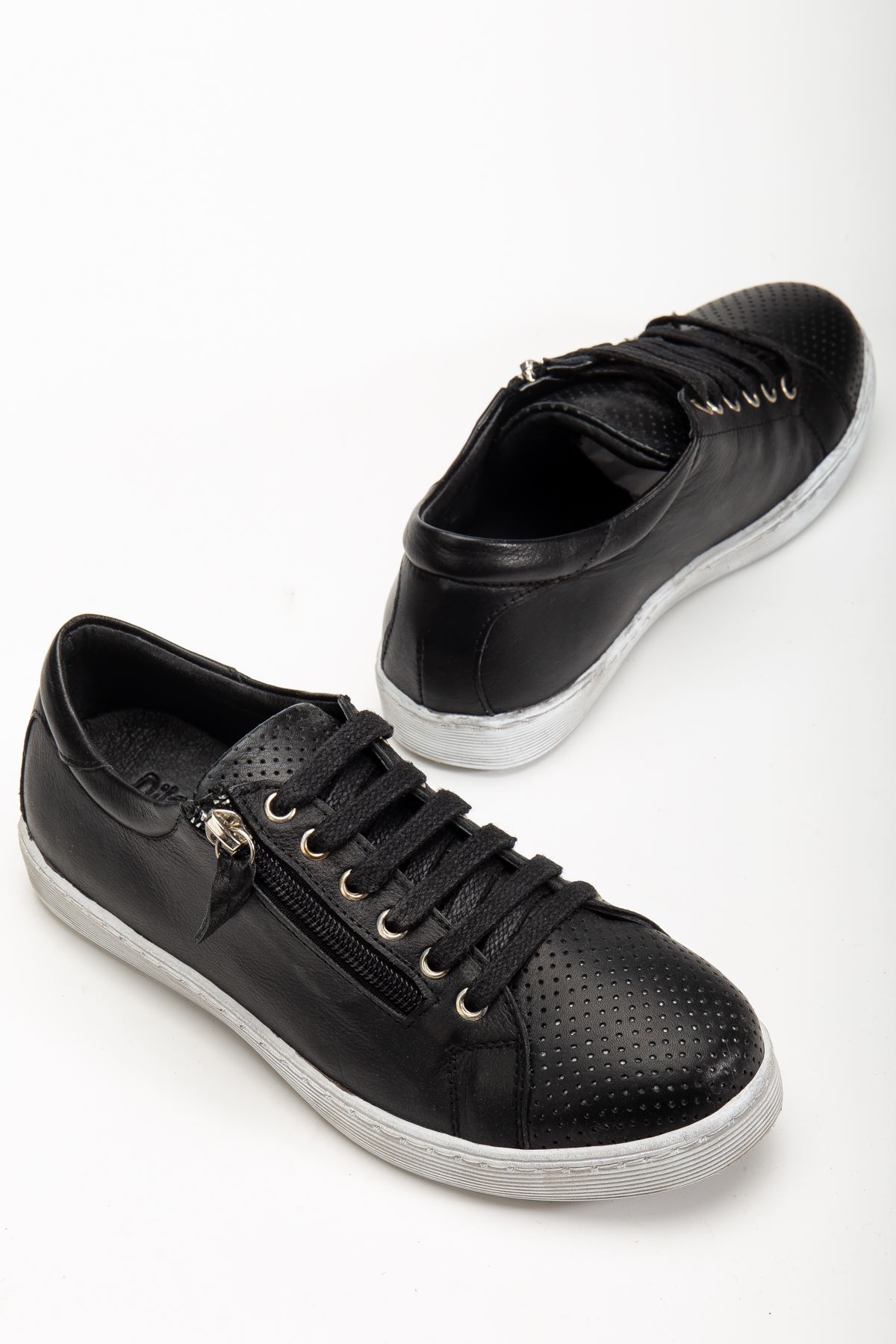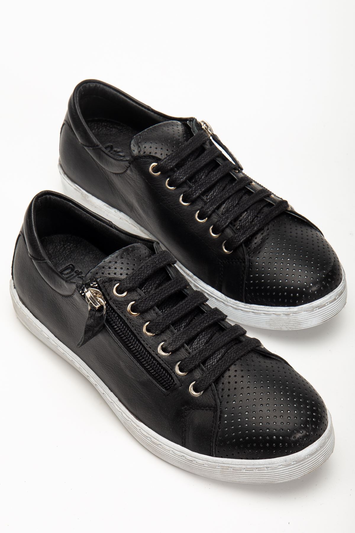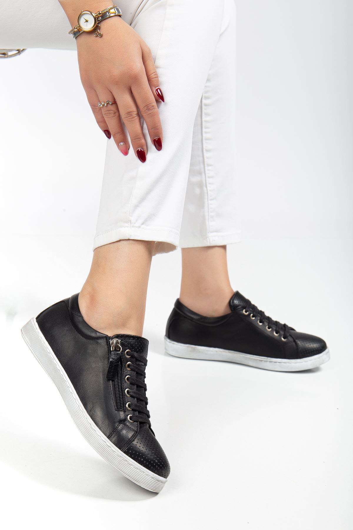 Kadın Siyah Hakiki Deri Delikli Spor Ayakkabı