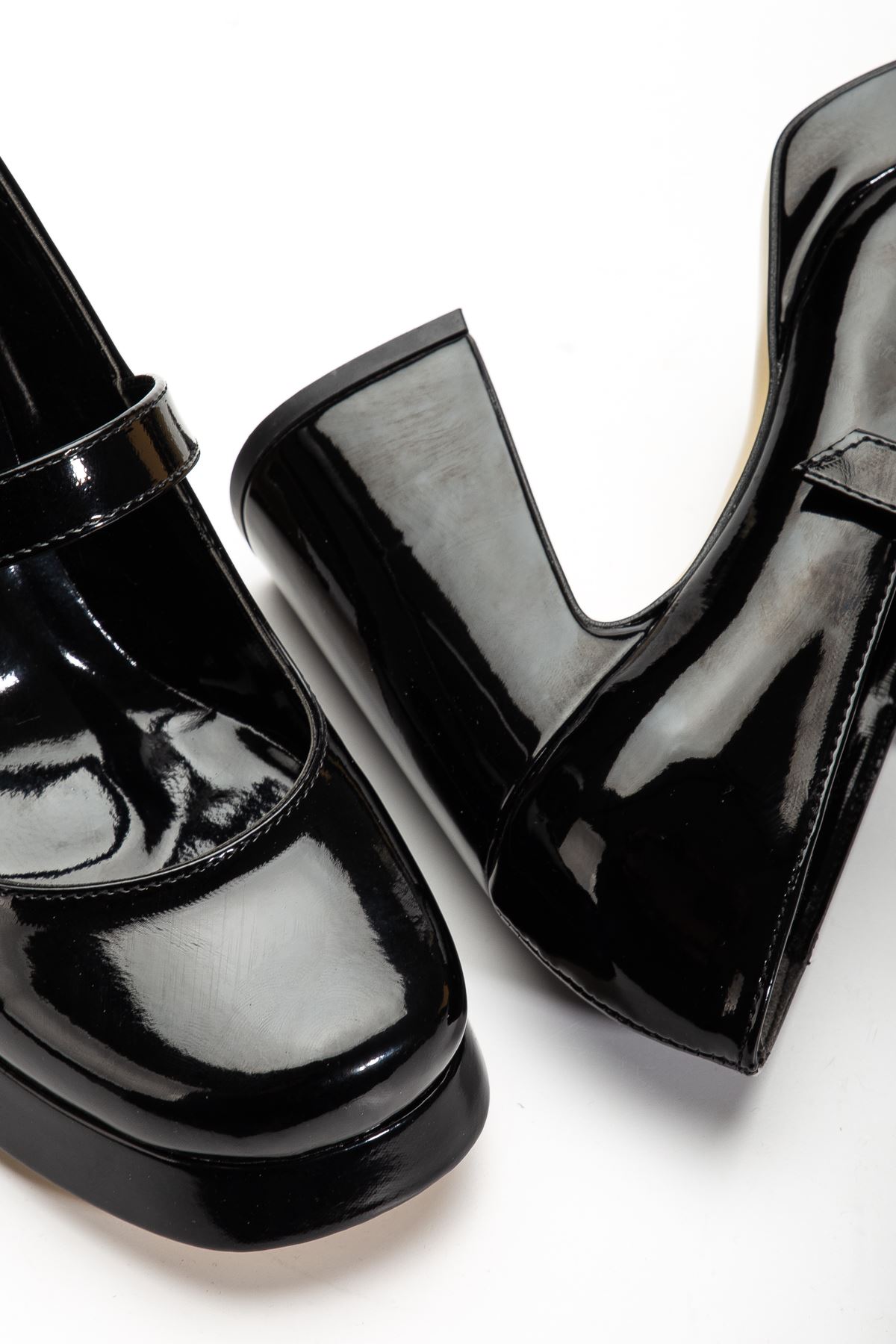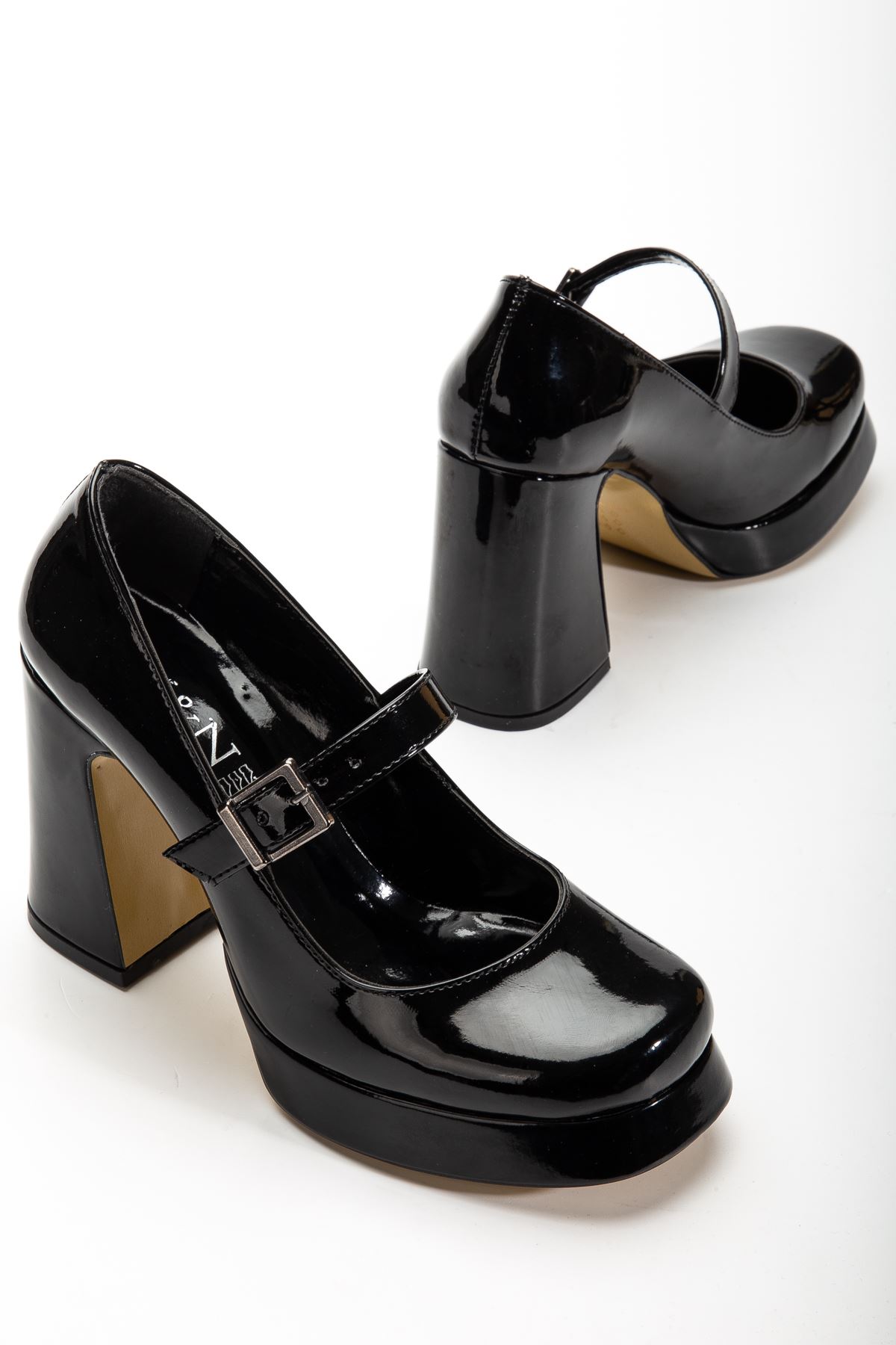 Renk: Siyah Detay: Küt BurunMalzeme: Rugan Topuk Boyu: 10 cmPlatform: 2 cmTaban Materyali: Neolit Jurdanİç Taban: Pad'li İç Taban.Kalıp: Standart Ayak Ölçülerine Göre Tam Kalıp
