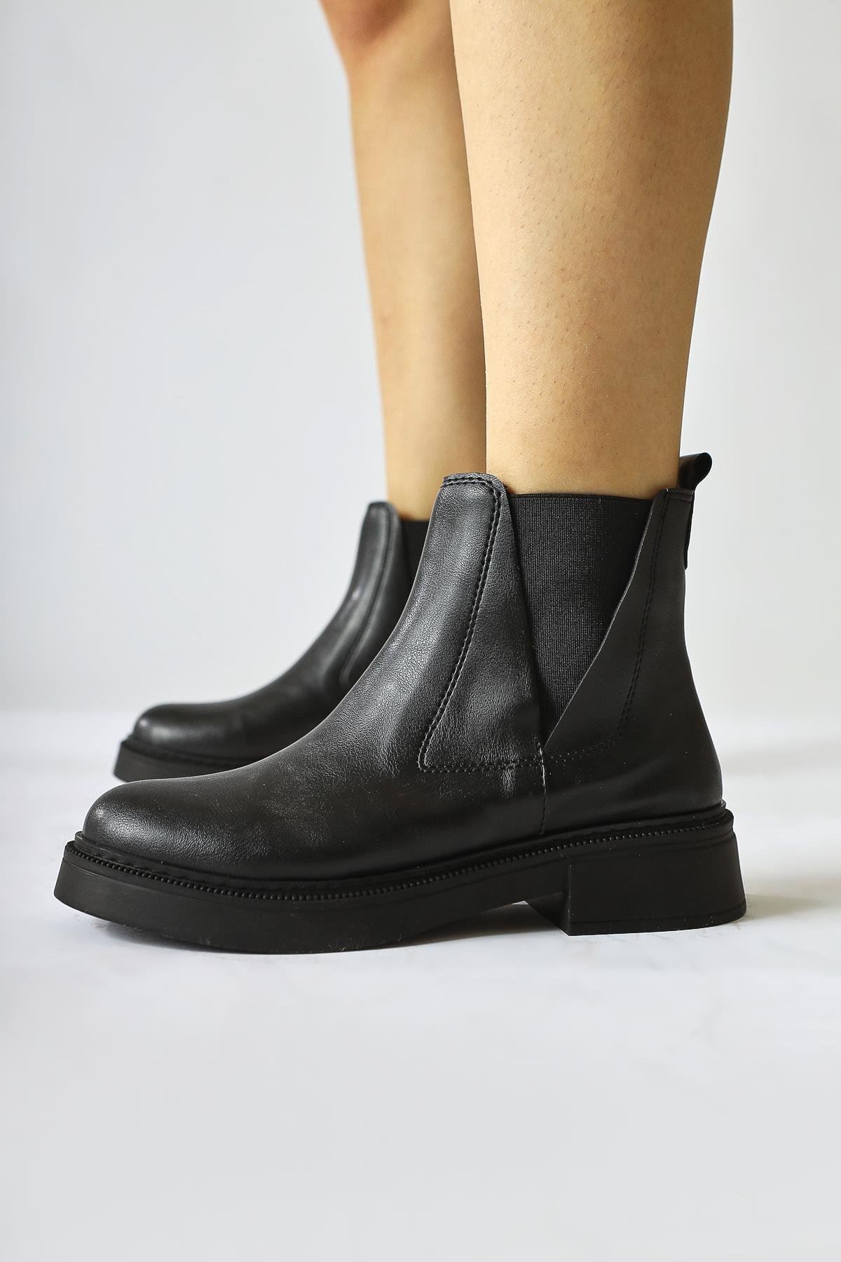 Renk: Siyah Detay: Bağcıklı Yandan Fermuarlı Malzeme: Cilt Topuk Boyu: 3,5 cm. Taban Materyali: Termo Taban İç Taban: Pad'li İç Taban. Kalıp: Standart Ayak Ölçülerine Göre Dar Kalıp.