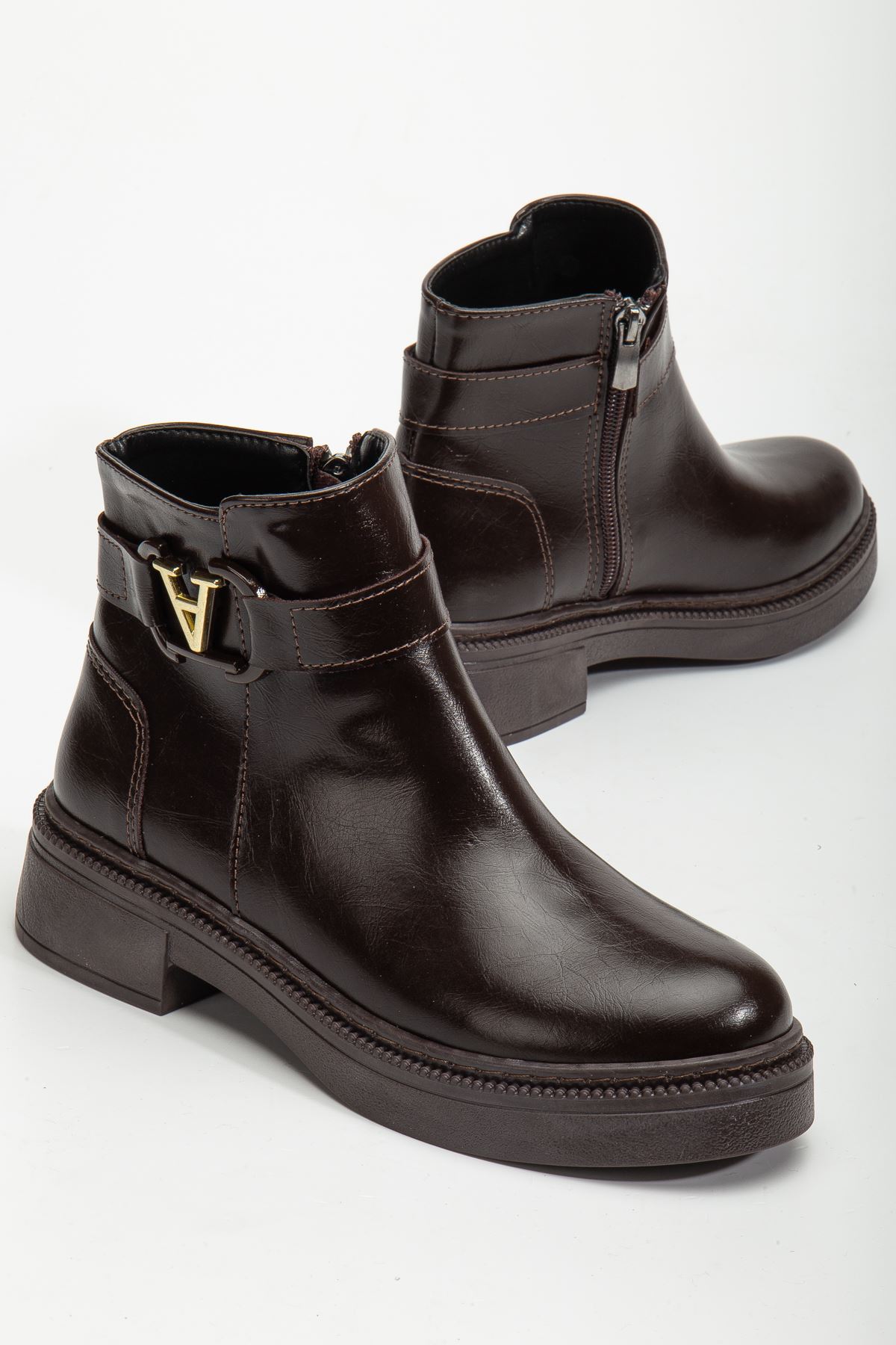 Renk: Kahverengi Detay: Tokalı Malzeme: Cilt Topuk Boyu: 3,5 cm Taban Materyali: Termo Taban İç Taban: Pad'li İç Taban. Kalıp: Standart Ayak Ölçülerine Göre Dar Kalıp.