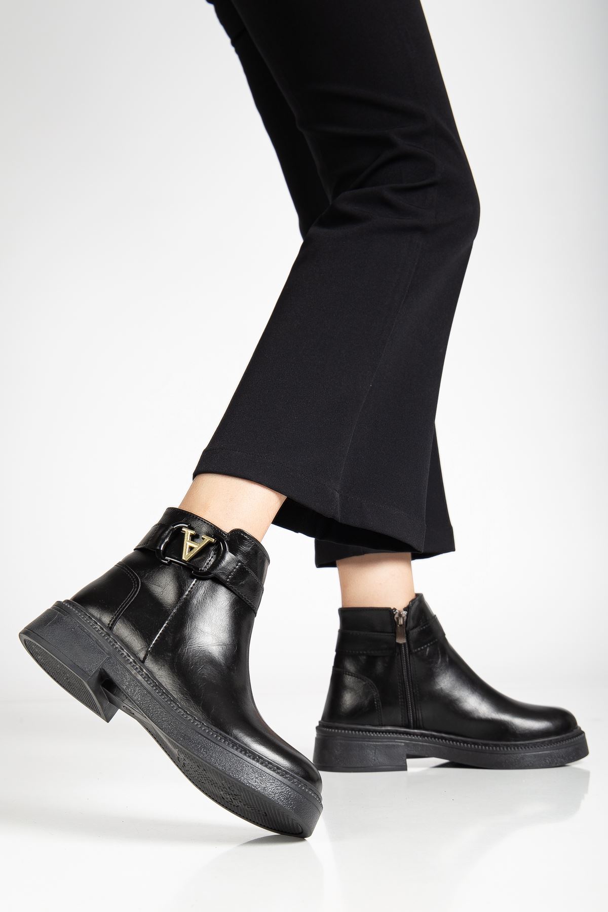 Renk: Siyah Detay: Tokalı Malzeme: Cilt Topuk Boyu: 3,5 cm Taban Materyali: Termo Taban İç Taban: Pad'li İç Taban. Kalıp: Standart Ayak Ölçülerine Göre Dar Kalıp.