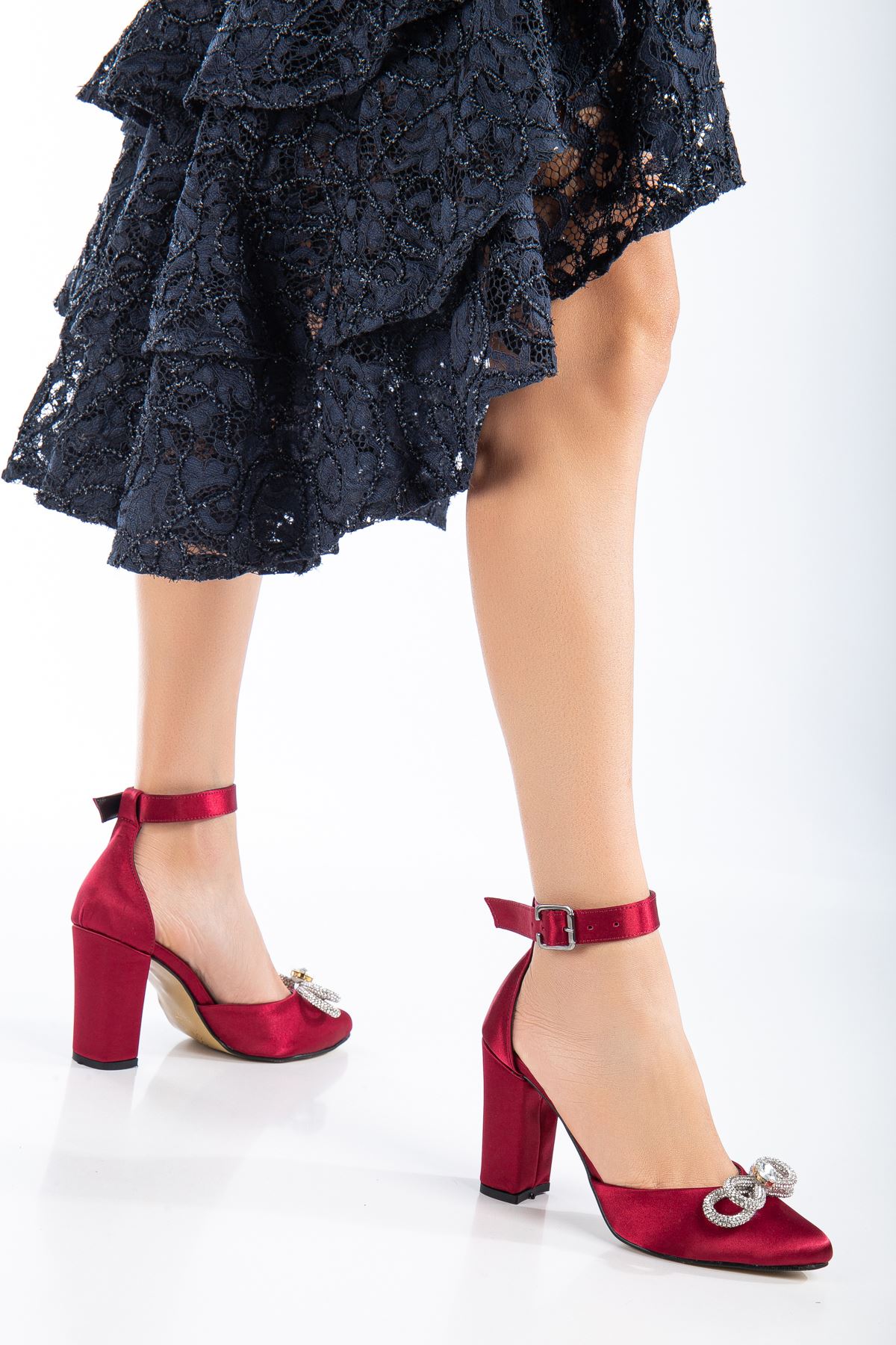 Renk: Bordo Detay: Topuklu Malzeme: Saten Topuk Boyu: 34-35 7 cm, 36-37-38-39-40 9 cm, 41-42-43 10 cm Taban Materyali: Neolit Jurdan Taban İç Taban: Pad'li İç Taban. Kalıp: Standart Ayak Ölçülerine Göre Tam Kalıp.