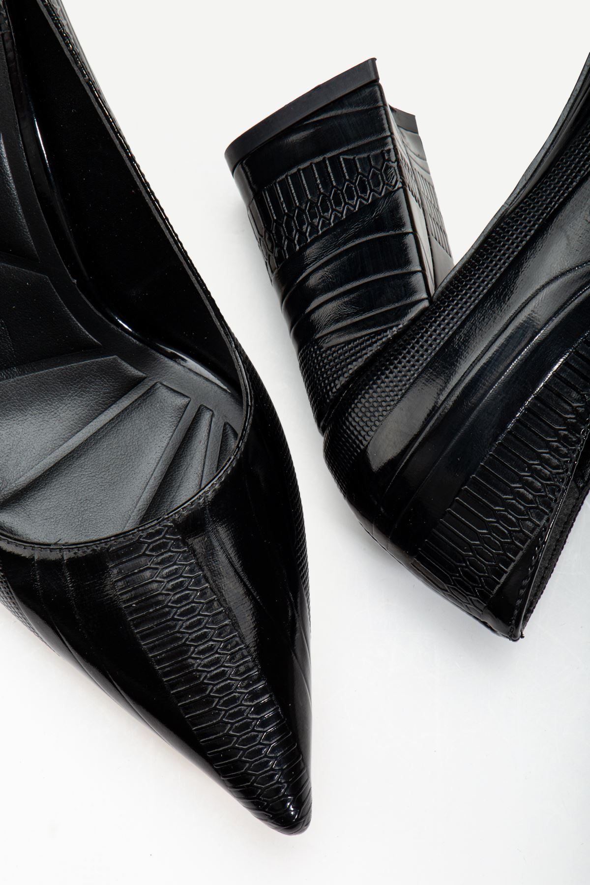 Semira Siyah Sivri Burunlu Detaylı Topuklu Ayakkabı