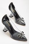 Siyah Stiletto Taşlı Şeffaf Topuklu Ayakkabı