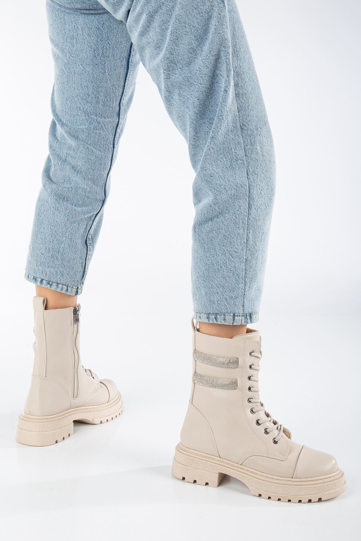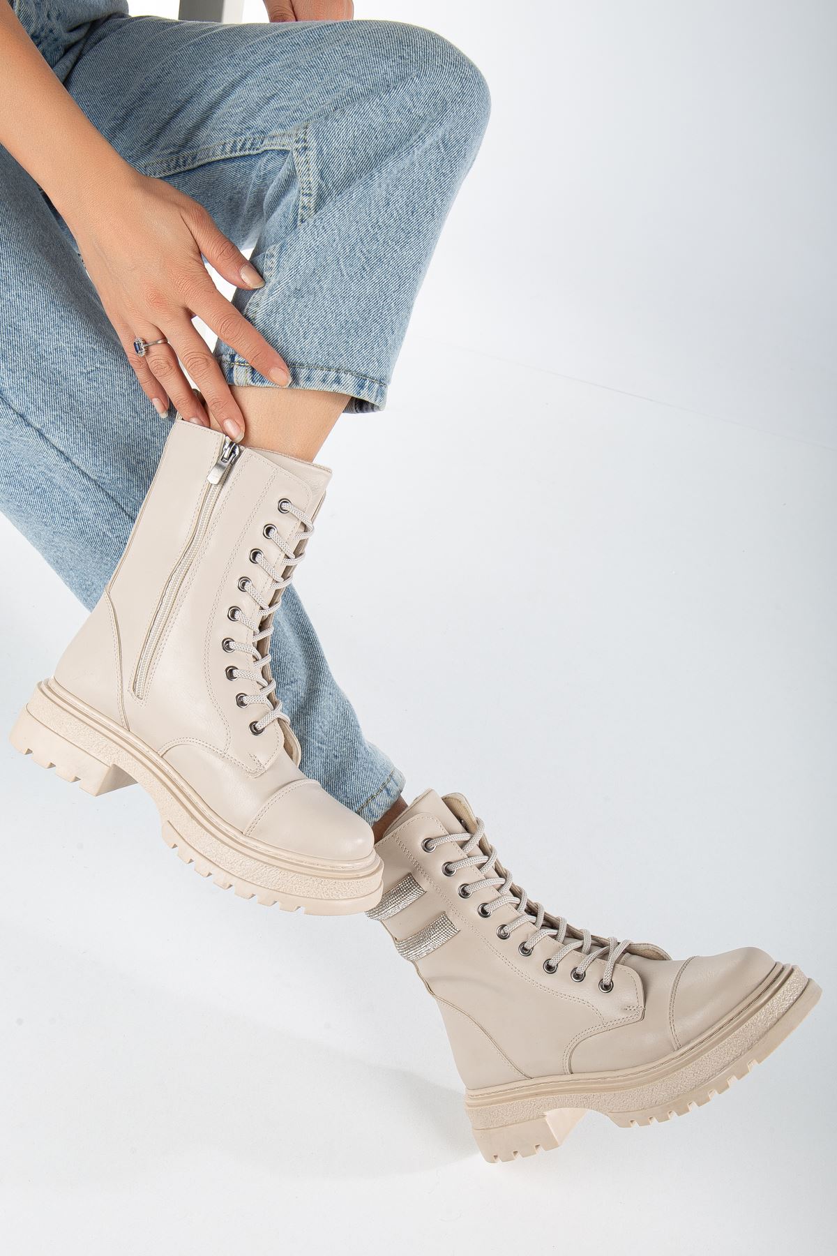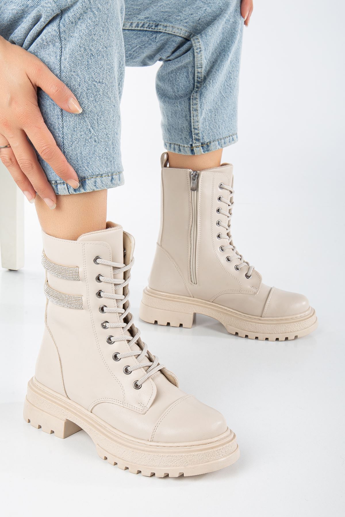 Renk: KremDetay: Taş İşlemeMalzeme: Suni DeriTopuk Boyu: 5 cm.Taban Materyali: Poli Air Hafif Tabanİç Taban: Pad'li İç Taban.Kalıp: Standart Ayak Ölçülerine Göre Tam Kalıp.